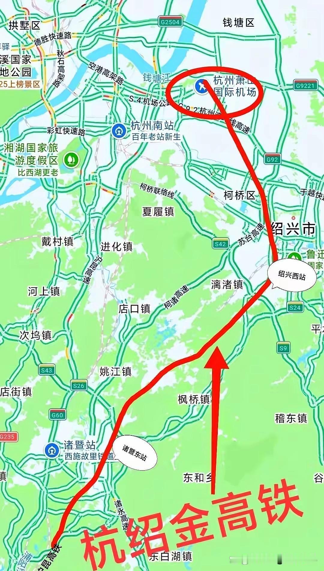 萧山机场高铁这步棋,下得挺有意思,直接给我看乐了。 这回没往南去动宁波的蛋糕,反而是一头扎进了西边的金华。 这条杭绍金铁路,从萧山机场出发,一路串起新建的绍兴西、诸暨东,最后搭着沪昆线直插义乌和金华。 这路子野啊。 以前去义乌谈生意,要么忍受那个小机场的航班少,要么高铁转大巴折腾半天。现在好了,萧山机场直接把“吸管”插到了义乌家门口。 这就苦了义乌机场,本来客源就紧巴巴,这下还得跟省会枢纽抢饭吃,日子怕是难过了。反倒是宁波栎社机场,这次算是躲过一劫。要是这高铁南下,宁波那点国际客流怕是要被吸干。 看来杭州这次是讲了武德,没想把“杭甬双城记”演成独角戏。 不过这哪是什么手下留情,分明是先把容易消化的肉给吃了,毕竟在区域博弈的棋盘上,从来只有利益最大化,没有真正的温情脉脉。