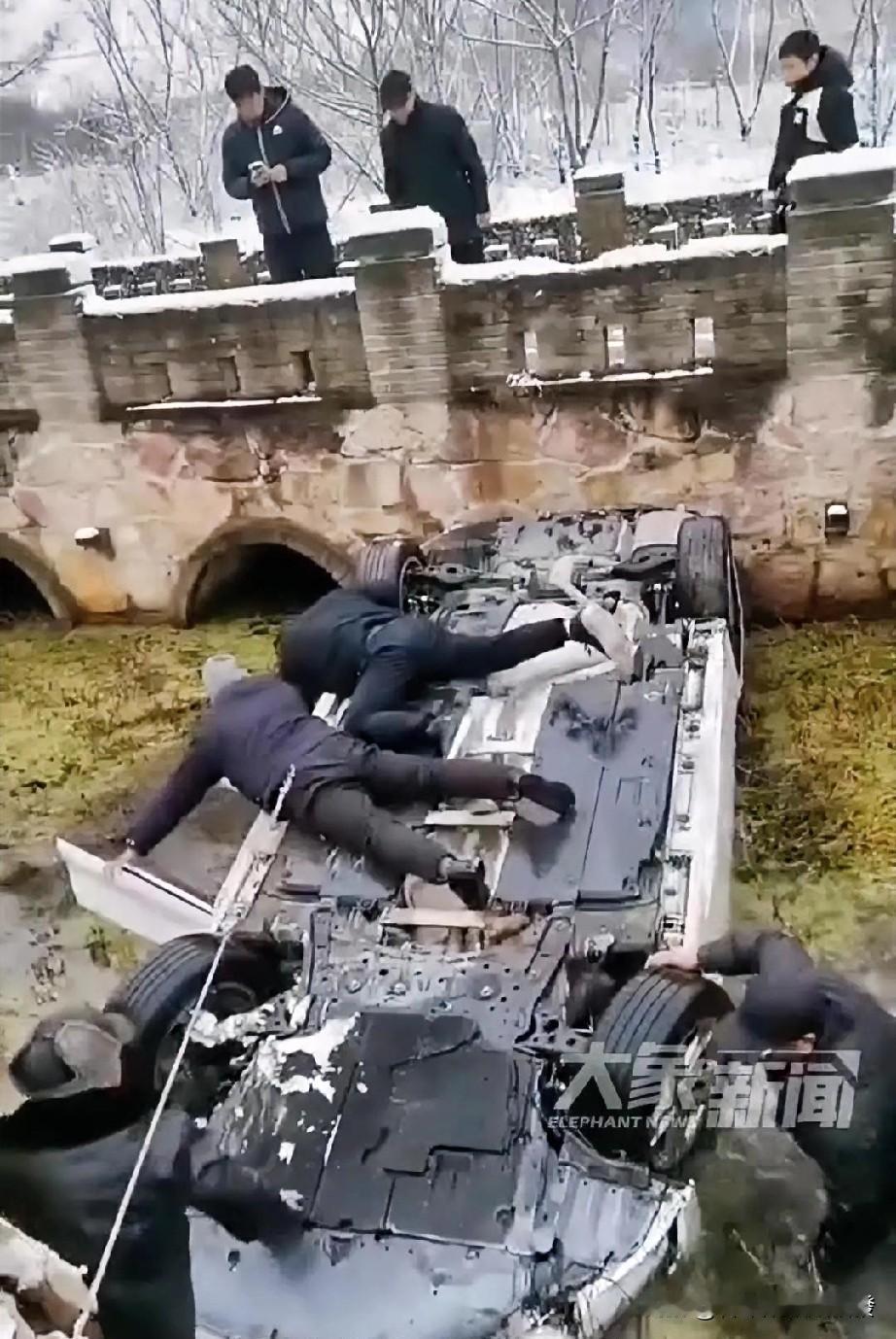 热泪盈眶!下雪路滑,一辆轿车不小心翻入河道,直接倒扣在水中,被困车内的夫妻俩和1岁多孩子非常危险…… 路过的公交车司机与附近村民看到后,二话不说就跳进冰冷的河水中,大家一起想办法把门先打开,然后合力把一家3口成功救出。 孩子的母亲被救出来时,吓得都哭了,不住的呼喊自己孩子,生怕出什么意外。 多亏了这些及时赶过来的热心人,一定要谢谢他们,如果不是他们及时出手,后果真的不堪设想。 你想想,就光这刺骨的河水有谁会受的了?能顶几分钟? 其实我遇到下雪天气时,一般是不开车的,因为下雪特别是上冻后,路面特别地滑,行驶过程中你会发现,车几乎是不受控的。 车在你手中不受控,你不觉得可怕吗?所以这个时候我宁愿步行,或者骑个电车双脚耷拉到路上慢慢走,我也不开车。 除非有急事,下雪天尽量减少出行,安全第 一,不要高估了自己的驾驶水平。大家说是吧? 内容来源:大象新闻 河南信阳