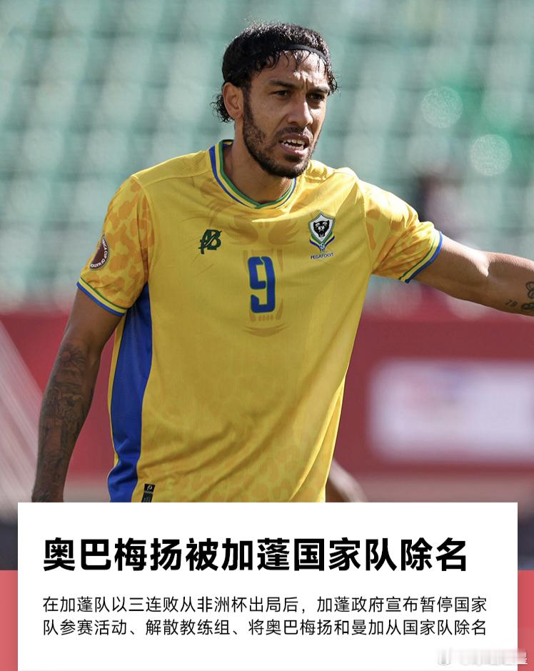 在加蓬队以三连败的糟糕战绩从2025年非洲杯小组赛垫底出局后,加蓬政府官方发布声明,表示解散加蓬队教练组并暂停国家队一切参赛活动,且将老将奥巴梅扬和曼加从国家队除名。在本届非洲杯上,加蓬与喀麦隆、莫桑比克、科特迪瓦同组,最终以三连败的战绩小组垫底出局。而被除名的两位老将奥巴梅扬和曼加均没有参加小组赛最后一轮比赛,其中奥巴梅扬是因伤提前返回俱乐部接受治疗。值得一提的是,在被除名前,奥巴梅扬在社媒面对一位球迷的指责时回复道:“我认为球队的问题比我这个小人物的严重得多。”加蓬政府官方声明鉴于加蓬国家队在2025年摩洛哥非洲杯上的糟糕表现,并考虑到其多方面的影响,与加蓬共和国所倡导的道德和模范行为价值观截然相反,政府决定:解散教练组;暂停国家队参赛资格,直至另行通知;-将球员布鲁诺··曼加和奥巴梅扬从球队名单中除名。此外,政府呼吁加蓬足球协会承担全部责任。