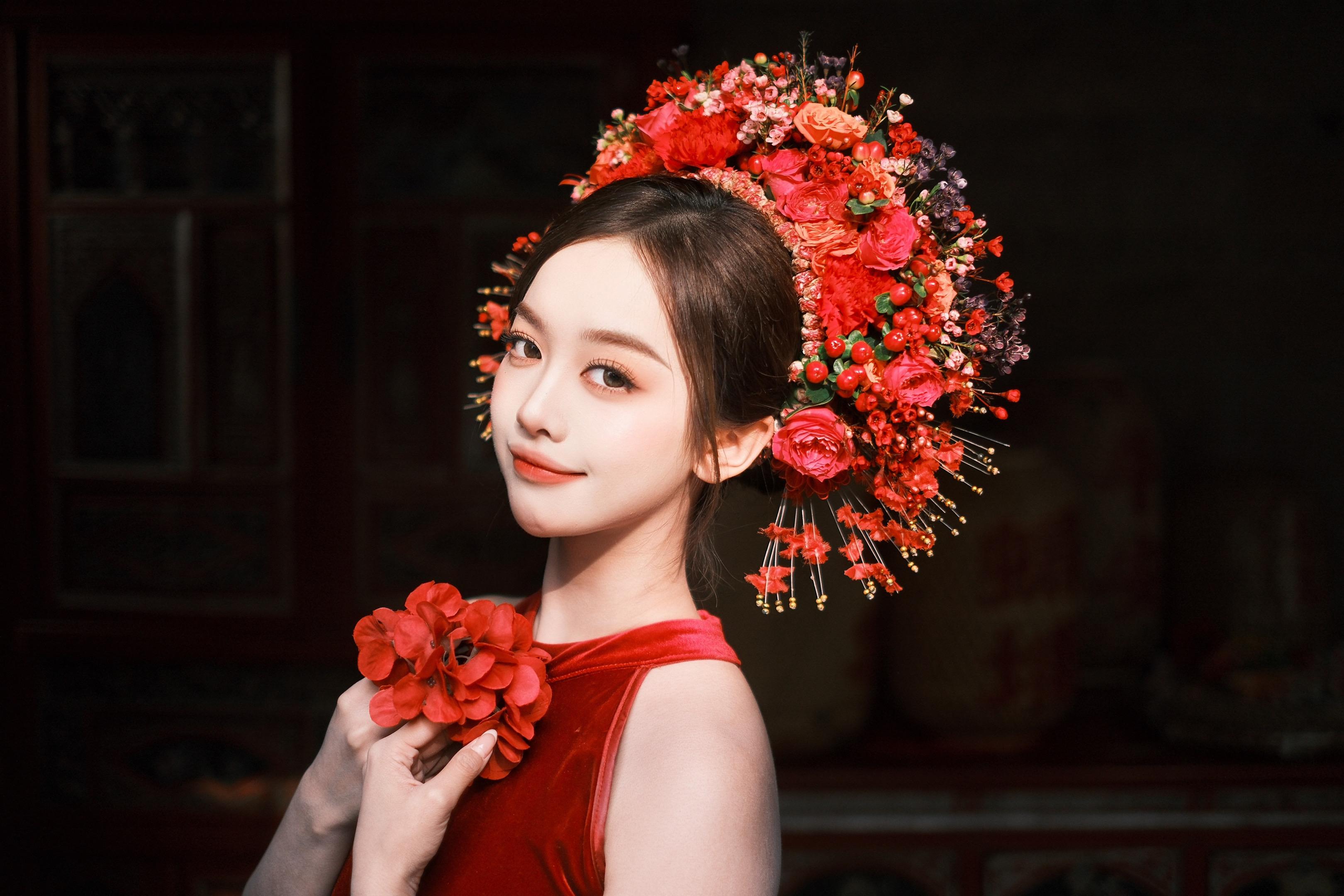 手中雕刻生花。