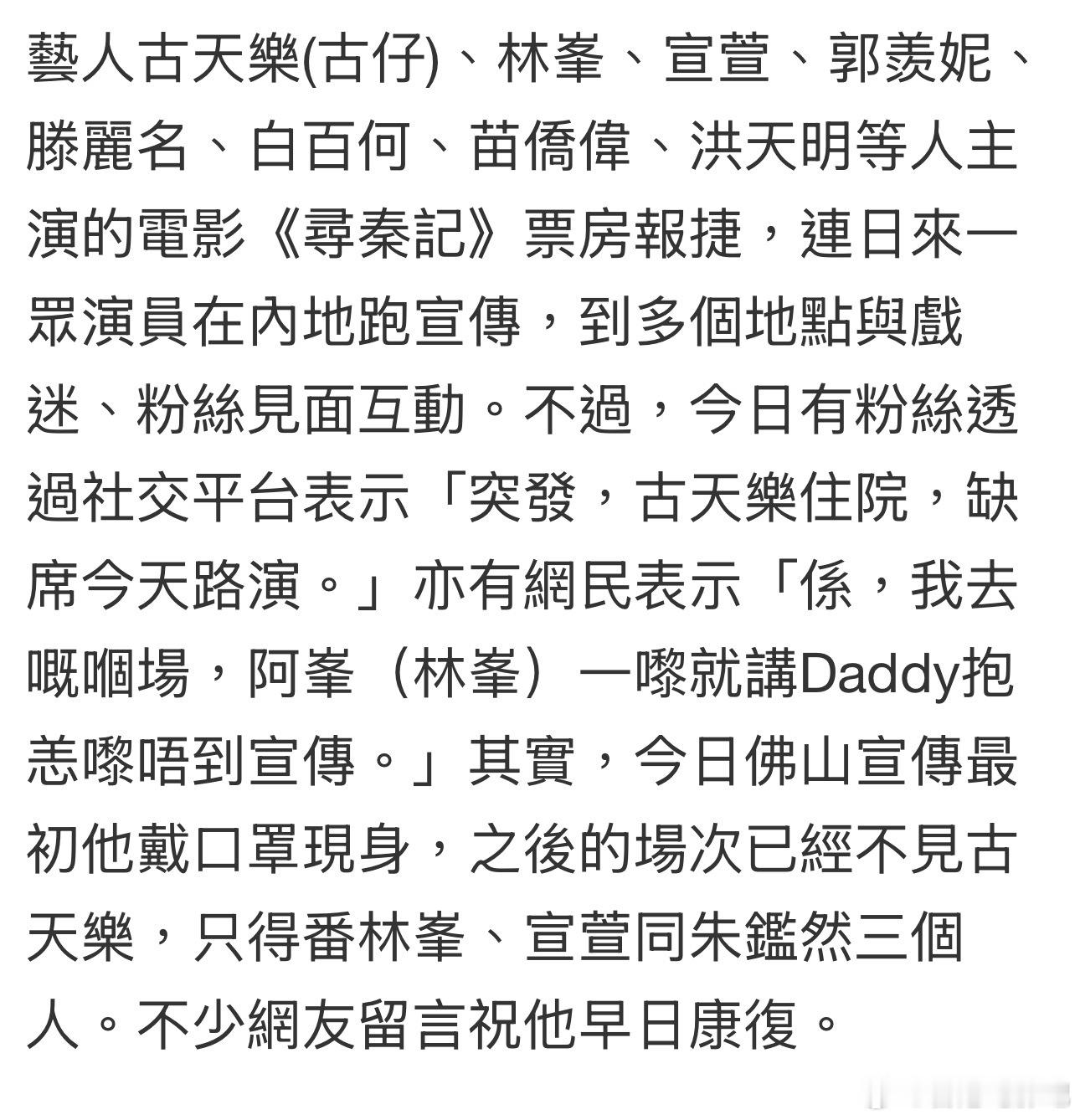 啊。古仔保重身体,这段时间为了寻秦记连轴转。
