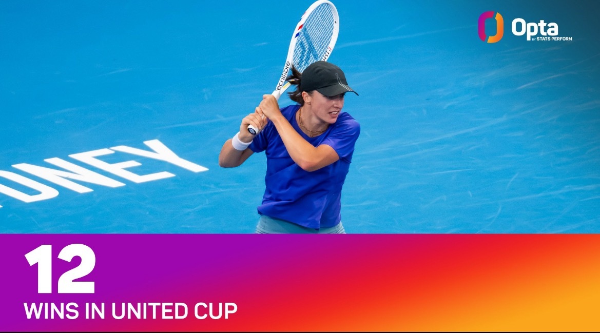 网球talking大会 12 - 伊加·斯瓦泰克在联合杯上取得了 12 场胜利,是该赛事创办以来,单打比赛中获胜次数最多的选手。
