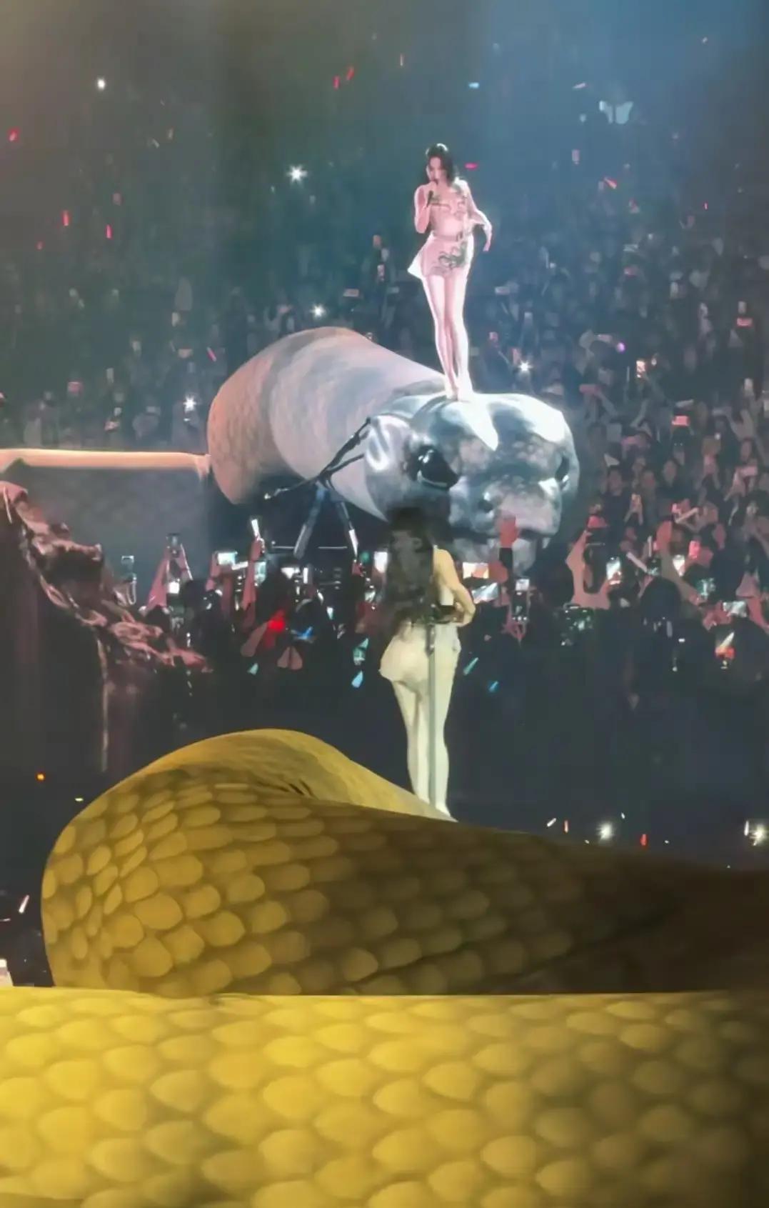 踩蛇舞台吓哭前排女孩 蔡依林把一条十米巨蟒搬进演唱会,灯一亮,前排小女生当场哭出声。网上吵翻天,有人喊换成龙,有人喊退票。 我去年带状疱疹,腰上绕一圈水泡,疼到半夜撞墙。看见这条蛇,第一反应不是怕,是松了口气:原来恐惧还能这么玩。 设计师说蛇代表蜕皮。我蜕完那层皮,现在吹风都疼。蔡依林把病毒放大一千倍,踩在脚下唱歌,这操作比任何安慰都管用。 有人觉得吓人,有人觉得治愈。艺术就这德行,同一束光,照出不同影子。