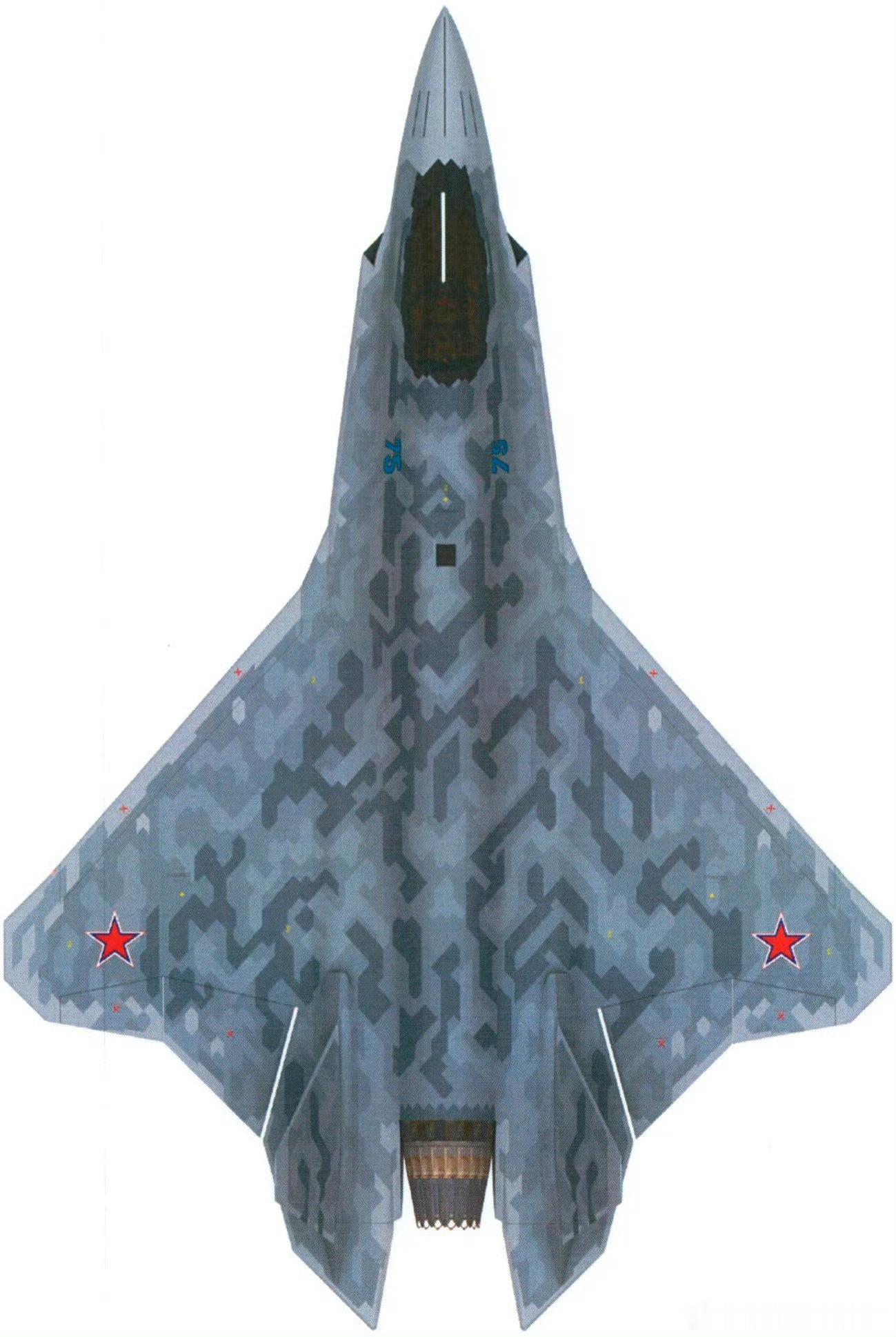 烽火问鼎计划武器装备俄苏75战机或于2026年量产 2026看点:VKS希望之星苏75的进气道之谜及其历史使命➡️苏75于2021年7月首次公开地面联调样机,并于同年11月参加航展吸引外国投资,主要是阿联酋,该样机直接移植了苏57的子系统,没有经过优化,导致第一版苏75有不少遗憾,例如酷似苏57的垂直接缝雷达罩、球形IRST、分体式座舱盖等。因SVO占用资金,苏75于2022~2025年四年间没有显著进展,停留在图纸方案论证优化阶段、直到2025年11月UAC才确认苏75首架原型机进入最后调试阶段,根据2025年11月迪拜航展期间,俄罗斯著名试飞员谢尔盖·博格丹(Sergey Bogdan)透露,苏-75的原型机已经在车间,正在进行最后的调试工作,首飞计划锁定在2026年初(图1)。2026年首飞的包括LCAMK2、KAAN P1原型机、KF21即将在3月亮相的量产机初号机,但它们的光芒均不如苏75,在这些外军战机里可能也只有KAAN能和苏75一较高下。➡️目前苏75有人版出现一次气动优化参考图2~图3,图4是2021年亮相的苏75迷之进气道:鼓包不明显,进气道唇口偏至下颚部位,类似J7FS的进气道隔板设计,这显然是一个临时进气道,2025年11月迪拜航展无人苏75采用了目标进气道DSI。进一步的证据来自苏75专利书,图7~图9明显看苏75机头下方出现一个比2021版苏75明显的鼓包结构,只不过这个鼓包相对宽矮、且DSI前列唇缘选择了小锯齿设计的四边DSI,类似F16的DSI设计(图10),这是一个典型的适应2马赫以内高隐形飞机的进气道设计,图11的CFD三维流场图也证明了苏75采用DSI进气道。此外图17苏75航电经常被误认为苏57航电、实际有区别参考图16、图17、图18细节区别,057号苏57原型机航电则代表苏57M航电采用了曲面三折屏。⭐️图13~图16为苏75研制历史机翻。目前已知俄6最权威的外形出现在UEC的PPT(图12),明显采用了翼下前掠DSI进气道X2,因此苏75可以说承担了VKS未来可能出现的第六代战斗机进气系统和隐形综合验证的历史使命,苏75沉寂4年后仍然项目没下马,说明它的重要性非同一般,是俄航空工业通往未来的希望之星。