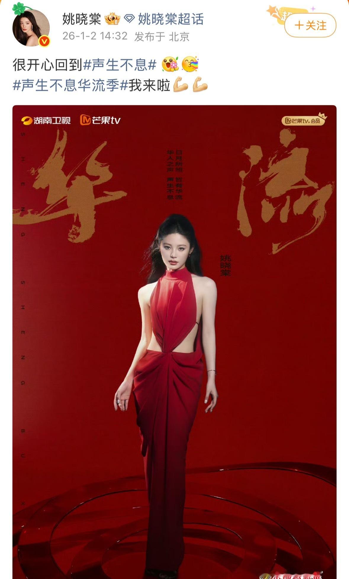 姚晓棠官宣加盟声生不息华流季 恭喜姚晓棠加盟《声生不息华流季》期待姚晓棠回归会带来怎样的惊喜舞台,期待😚声生不息声生不息华流季