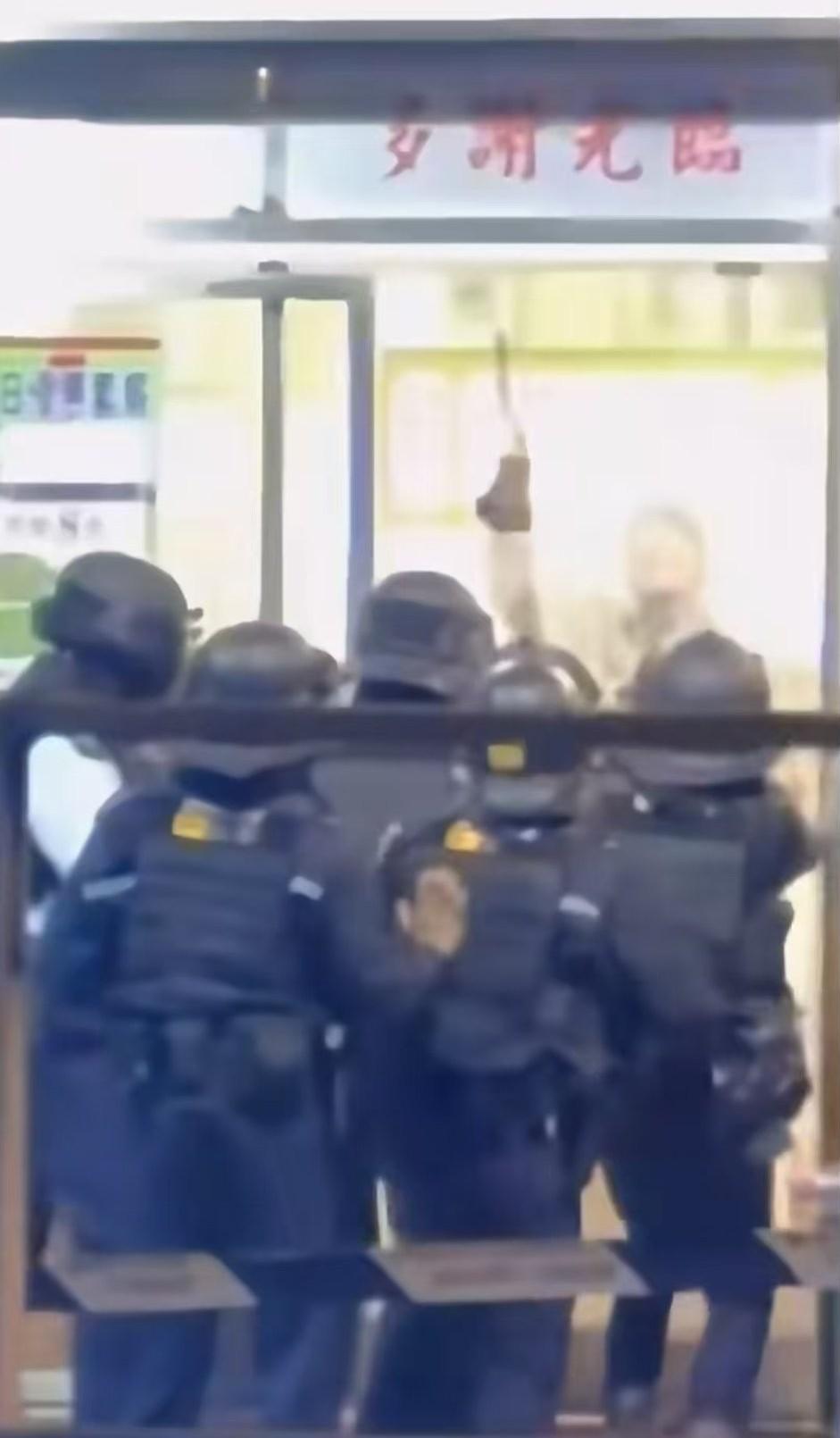 这得多大的火气,敢对执法者一挑多人?!怎么也得在“里面”过年了! 1月3号凌晨,香港龙琛路一家牛杂店,这名女顾客说是因为结账问题与老板发生争执。 在大批J力到达后她也不束手就擒,而是拿着武器与众J对抗,最终被成功制服。 对待短柄家伙,警棍明显不如长柄叉好使,一叉一个准,都用不了这么多人。