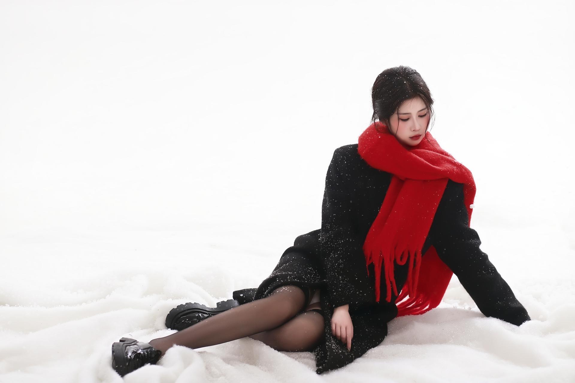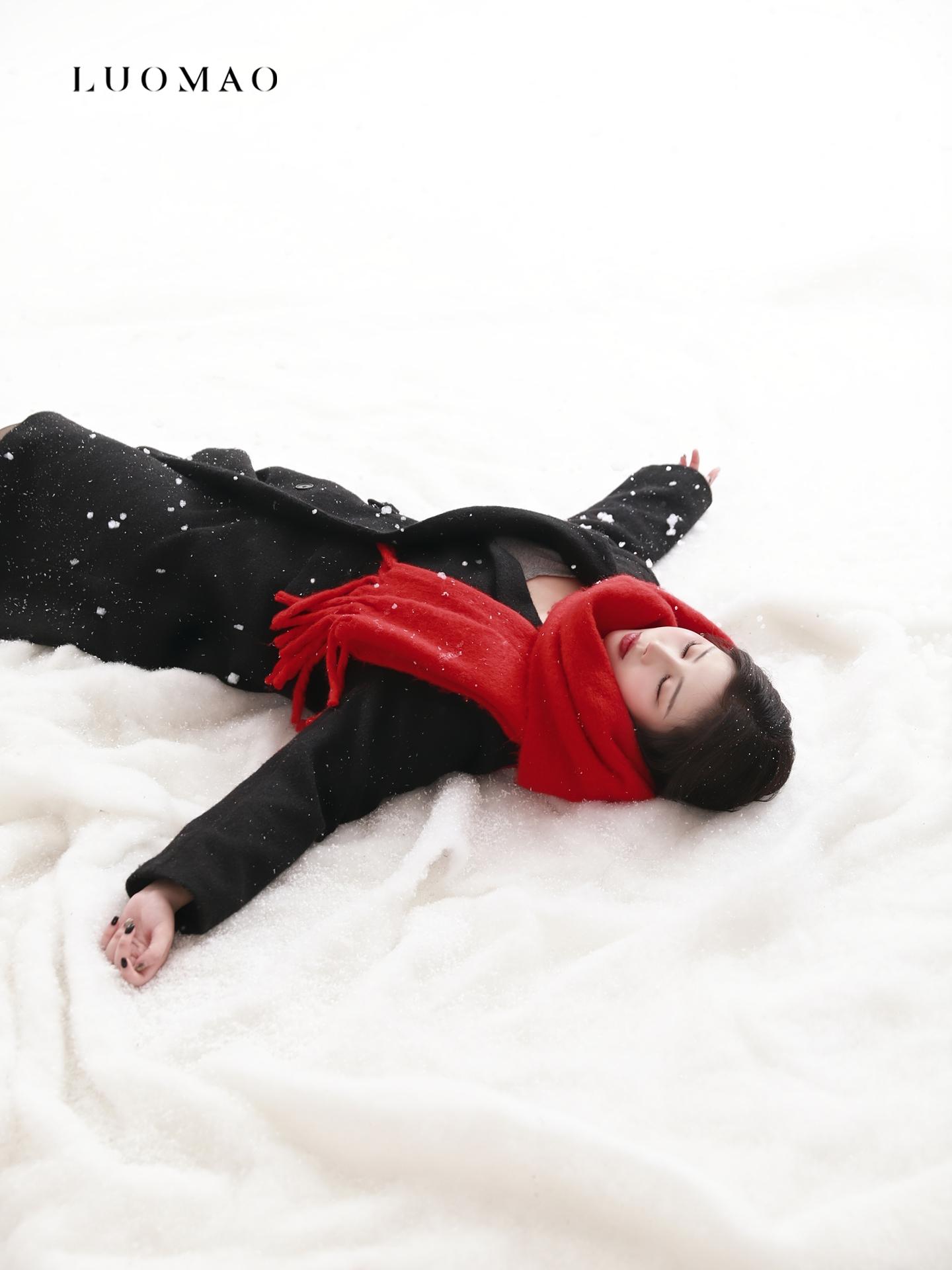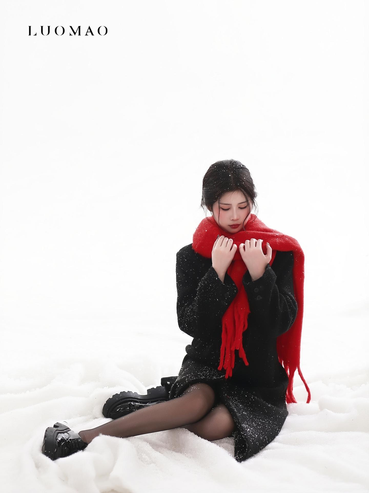 雪地红围巾写真|冬日氛围直接美到心尖❄️。