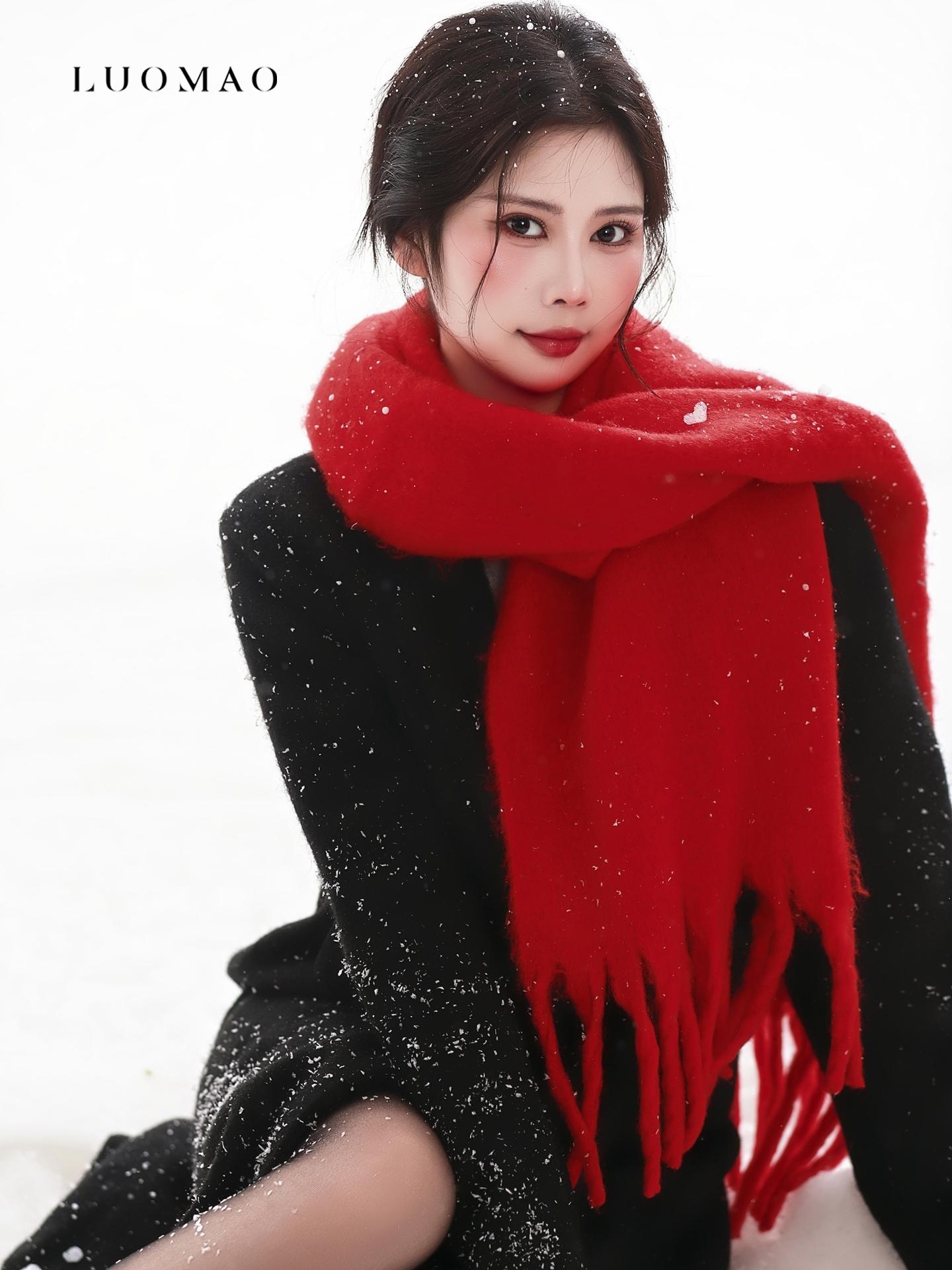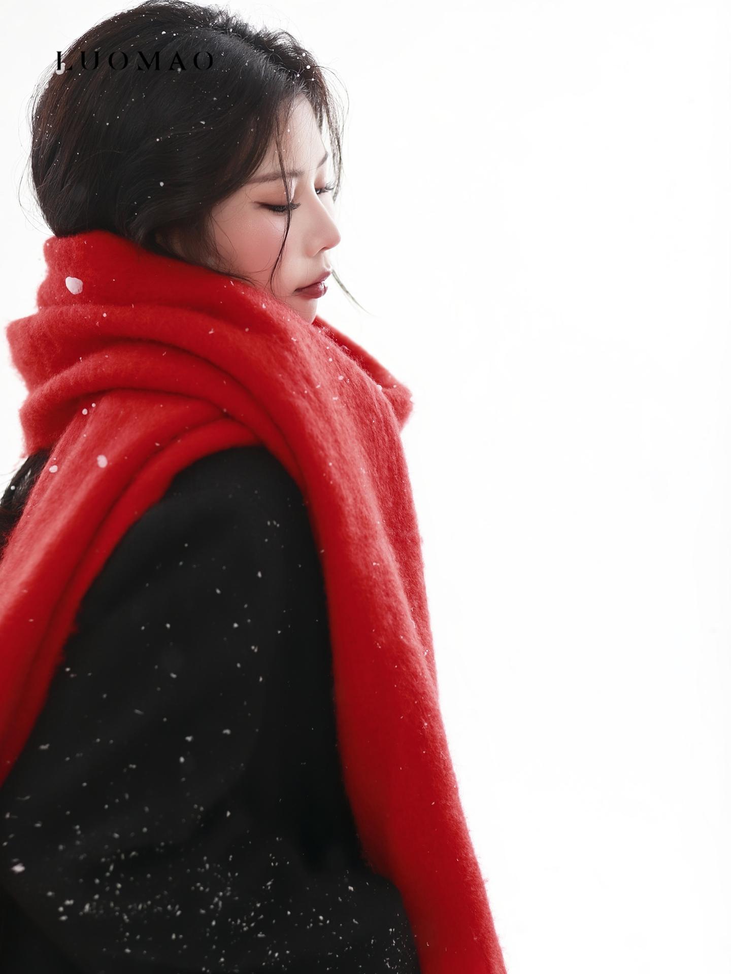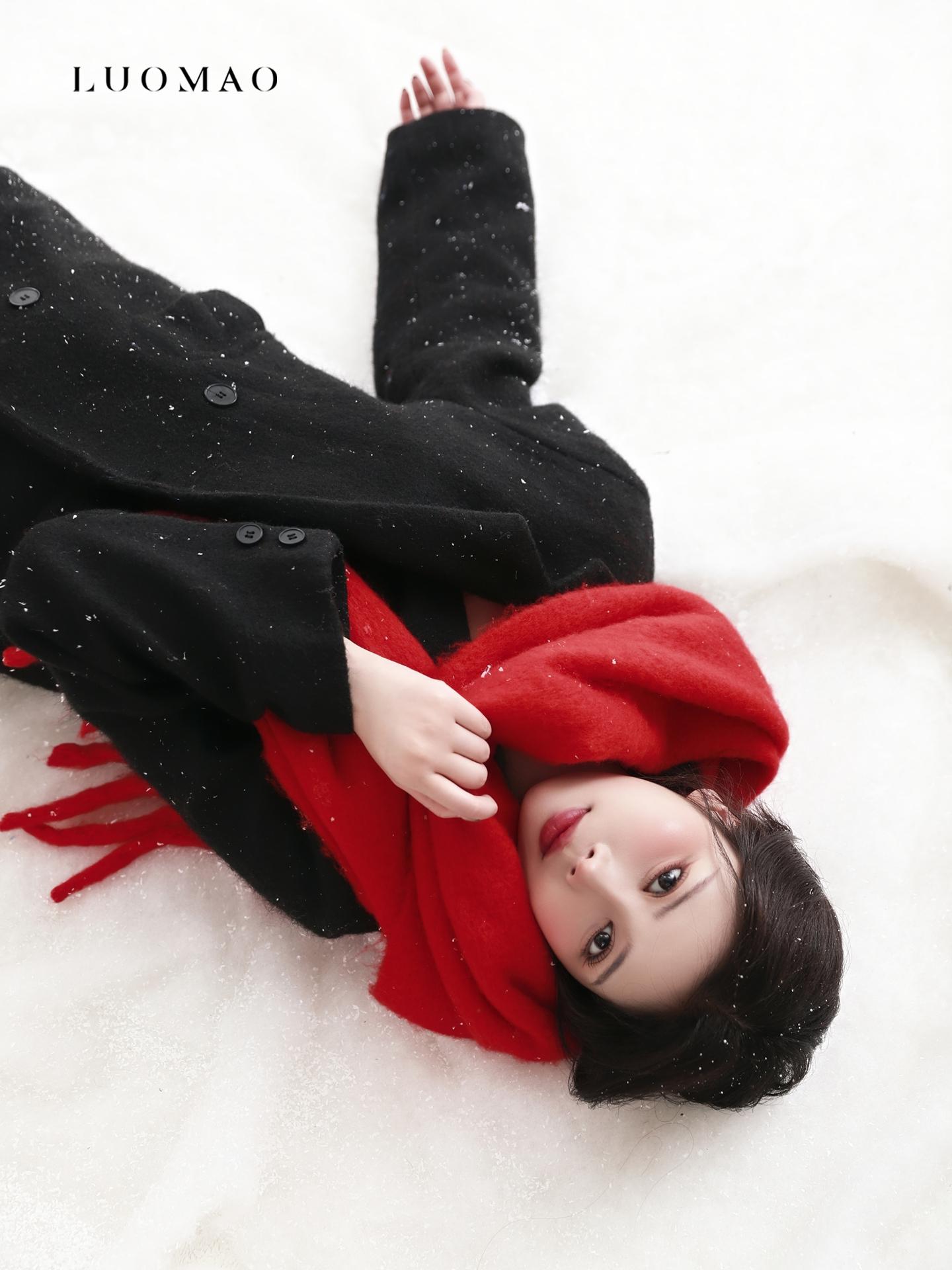 雪地红围巾写真|冬日氛围直接美到心尖❄️。
