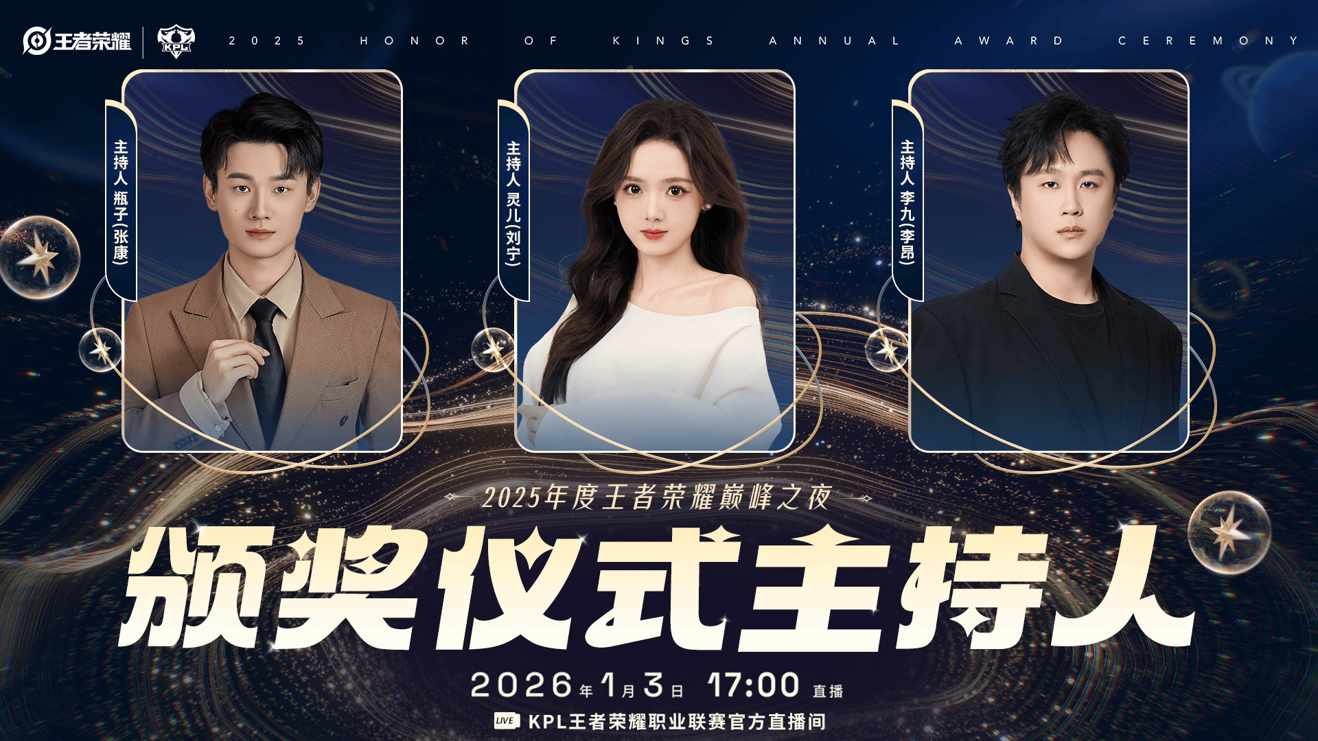 颁奖仪式主持人:解说瓶子(张康)、灵儿chili(刘宁)、解说李九(李昂)
