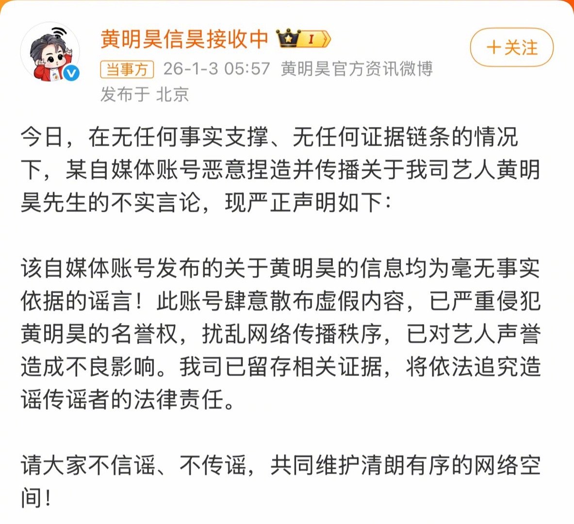 黄明昊工作室声明黄明昊工作室就司晓迪爆料的内容,也发文辟谣了。司晓迪iamroosie