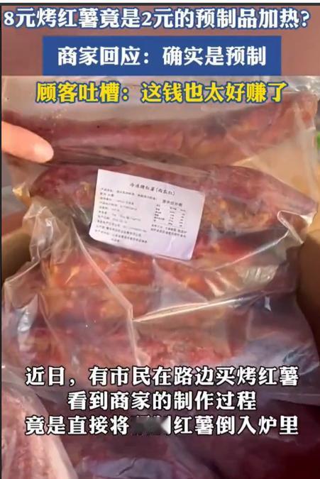 万万没想到!女子在街头看到有卖烤红薯的,突然心血来潮想要上去买一个,可在等待过程中,却发现制作过程和她想象的不一样,竟然是半成品“预制”的,而摊主也是大方承认,女子:你这钱也太好赚了吧   傍晚的街头,人流不算密,却很热闹,张女士(化名)和朋友吃过晚饭,沿着步行街慢慢走,可就在他们两人走着的时候,张女士闻到了烤红薯的香味,随即便走到摊主前面买了一个。   这时候摊主看起来很熟练,接过钱后却没有立刻从炉子里往外掏红薯,而是弯腰从旁边的保温箱里拿出一个用锡纸包好的红薯,随手放进炉子边缘加热,张女士心里一愣,她原以为红薯是从生到熟在炉子里慢慢烤出来的,可眼前这一幕与她对烤红薯的做法完全不一样。   她忍不住多看了几眼,发现保温箱里整齐码着一排排红薯,颜色均匀,大小相近,张女士好奇地问,“这红薯不是现烤的吗?”摊主也不遮掩,笑着说,“是熟的直接加热的,街头不好控制火候,这样更稳。”   话说得很直白,没有半点闪躲,摊主还补了一句,“放心,都是红薯,本身没加别的,就是省时间,也不容易烤糊”,张女士听完,心里有点复杂,一方面觉得和自己记忆里“慢慢烤、慢慢等”的烤红薯不太一样,少了点烟火气,另一方面又觉得摊主说得坦诚,至少没有糊弄。   视频发出后,很快引来不少评论,有人表示理解,说现在街头摊位条件有限,提前处理是现实选择,也有人觉得失望,认为“烤红薯就该是从生烤到熟,不然少了灵魂”。   讨论里,最被认可的一点是摊主的态度,多数网友认为,明明白白说清楚,比假装“纯手工现烤”要强得多,张女士看着评论,也慢慢释然,她意识到,很多人怀念的,或许并不只是红薯本身,而是过去那种等待的过程和对“现做现卖”的信任感。   夜色渐深,街头的白气还在升腾,时代在变,做法在变,能守住诚实,大概就是街头烟火最重要的一点。