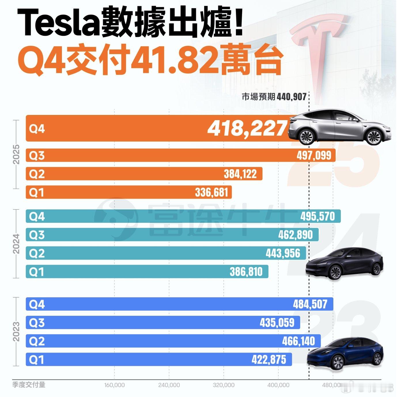 特斯拉第四季度交付同比下滑16%特斯拉 Q4 销量暴跌 15.6%,全年销量连续第二年下滑特斯拉公布 2025 年第四季度销量数据,仅交付 41.8 万辆汽车,同比下降 15.6%,低于华尔街预期的 42.3 万辆。全年销量为 163.6 万辆,同比下滑 8.5%,这是特斯拉连续第二年出现年度销量下降。销量下滑主要受美国、欧洲和中国市场竞争加剧影响