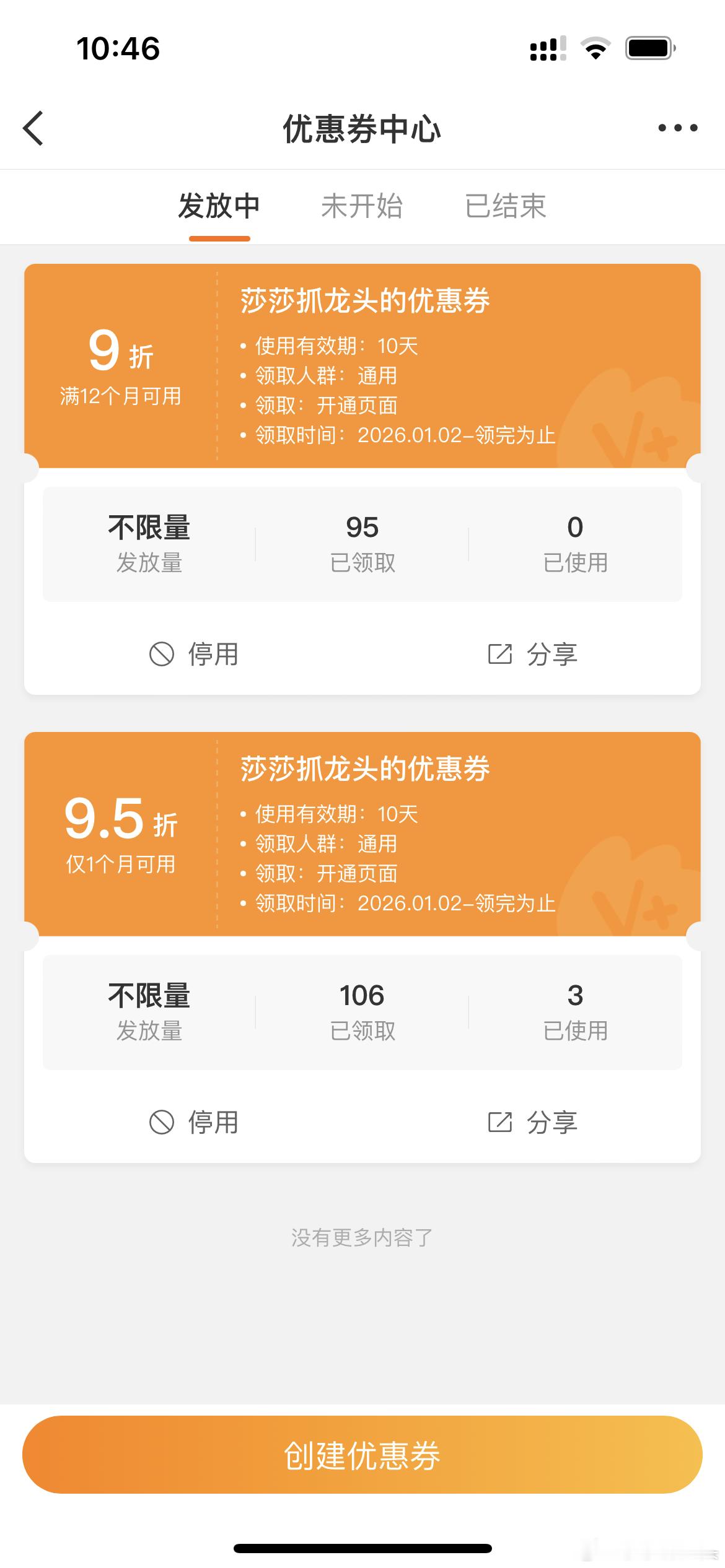 兄弟姐妹们优惠卷已经发放了,还没有领到朋友赶紧领,机会难得