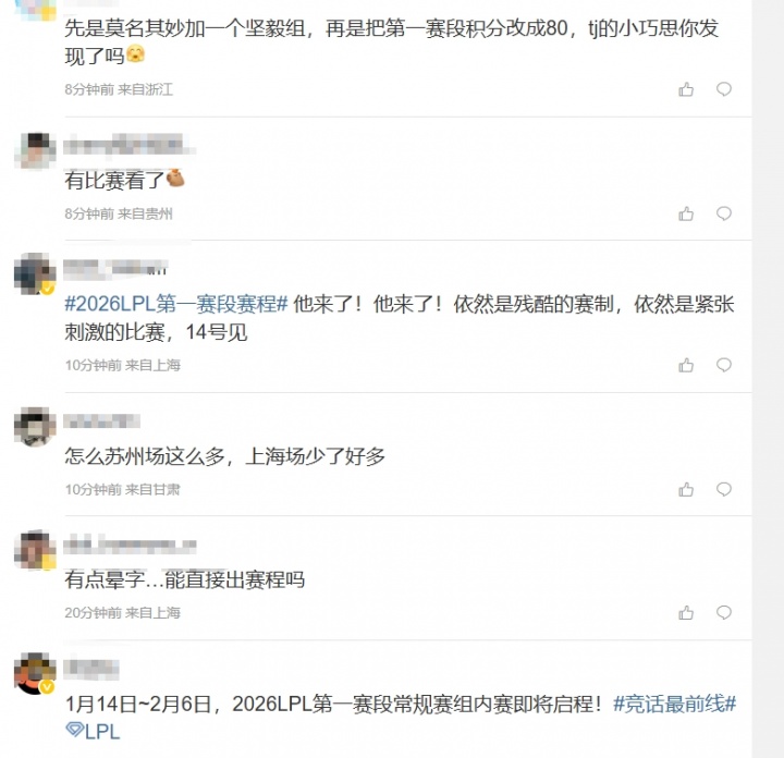 直播吧1月3日讯LPL公布了新赛季赛程、分组以及积分改动,随后粉丝们在官博评论区展开讨论。
