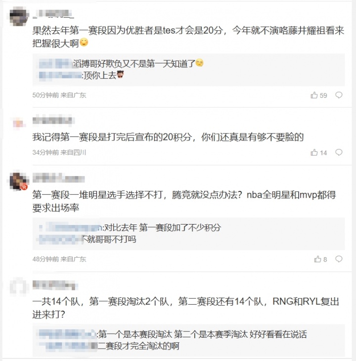 粉丝热议LPL新赛季改动:果然去年第一赛段因为优胜者是tes才会是20分