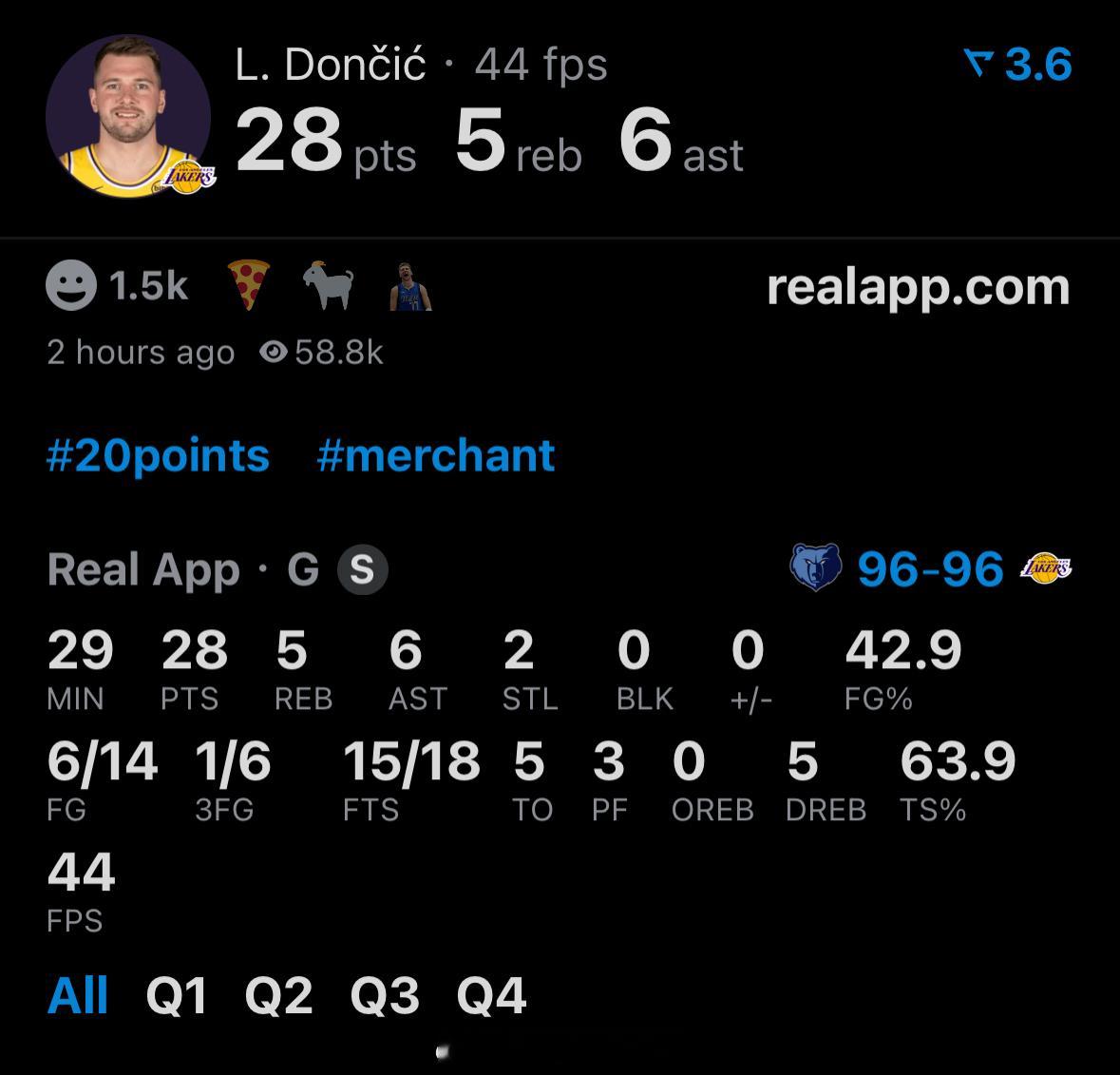 罚球数:东契奇 = 灰熊全队 = 18次灰熊vs湖人