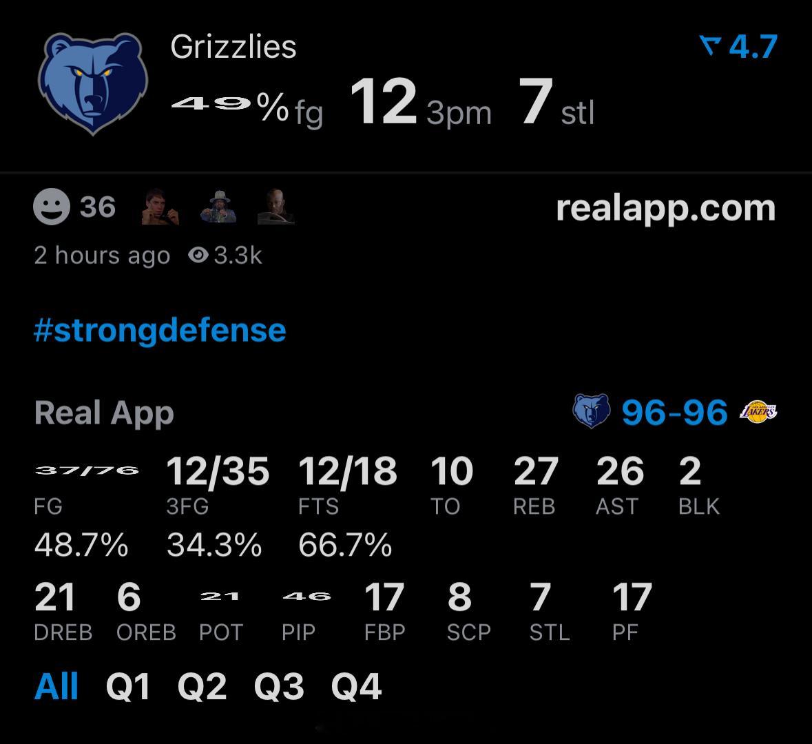 你敢信?灰熊运动战进球比湖人多4个,三分投得一样多,但是被湖人罚了41球,最后输