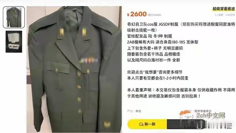 有网友发现,有日本自卫队的衣服和物品在中国二手平台上出售。如果是日本自卫队队员亲自卖的,那说明日本自卫队的队员有问题。如果是日本自卫队队员的物品被盗窃后出售,那说明日本自卫队的安保有问题。