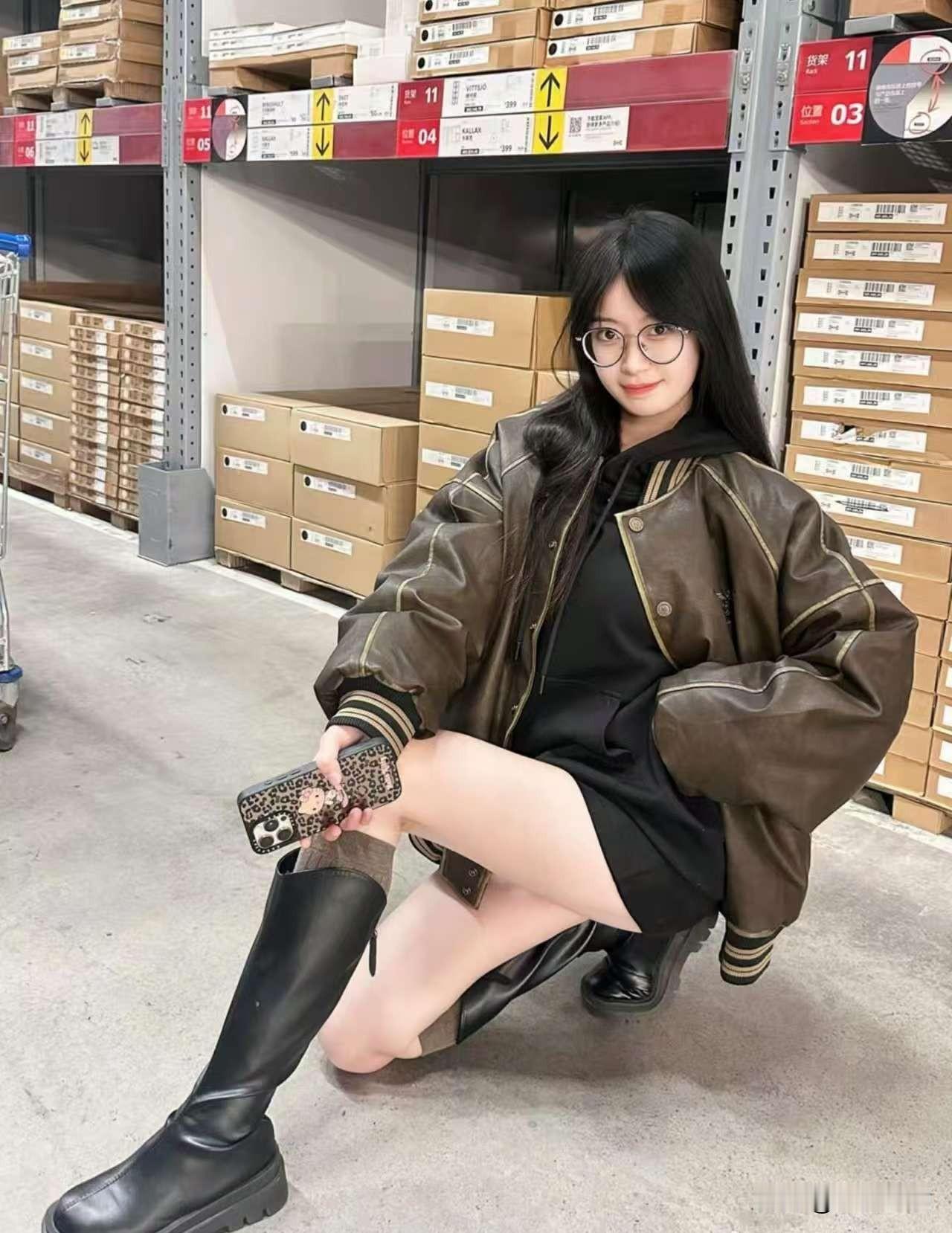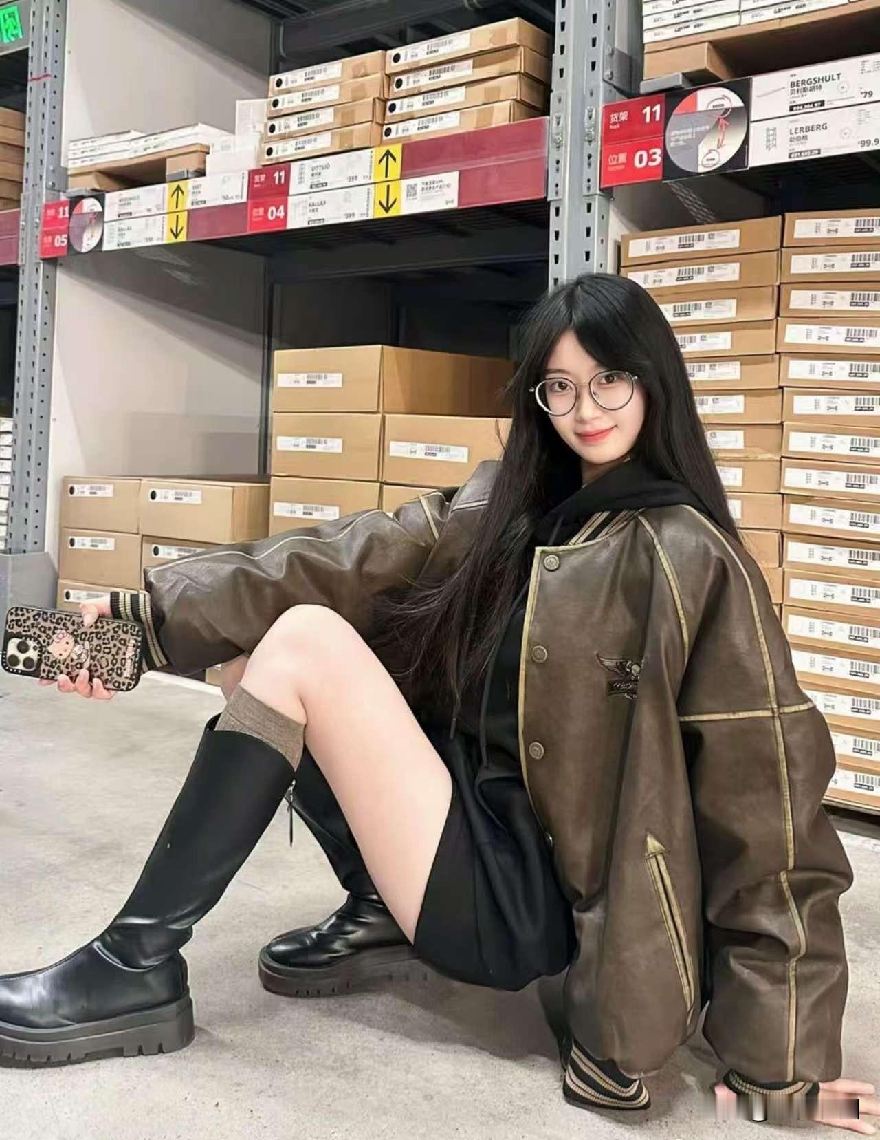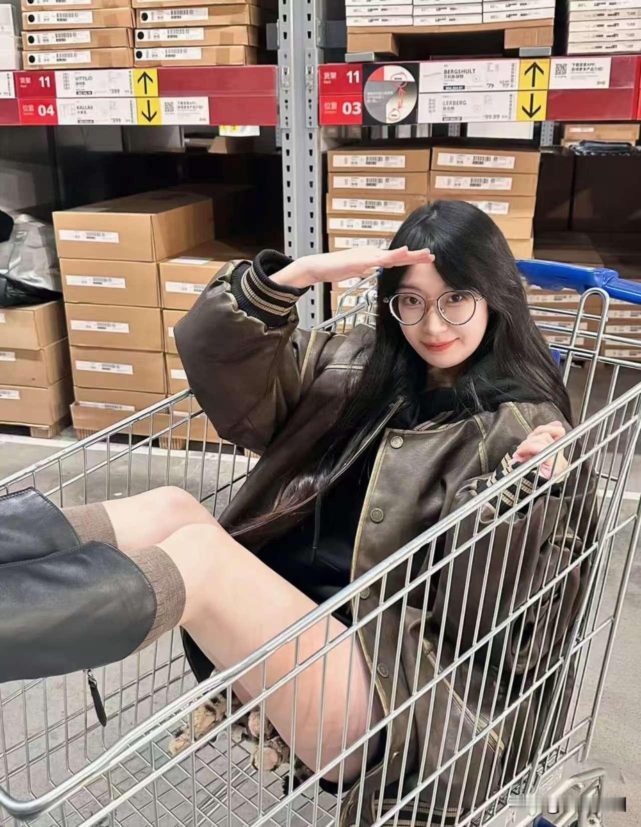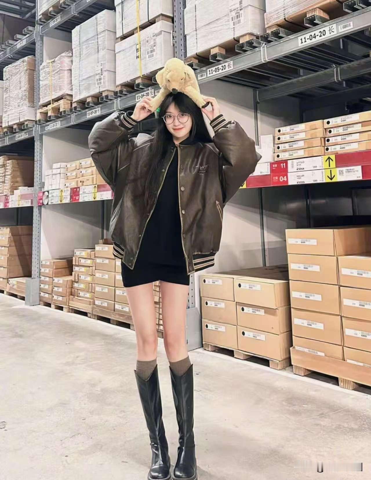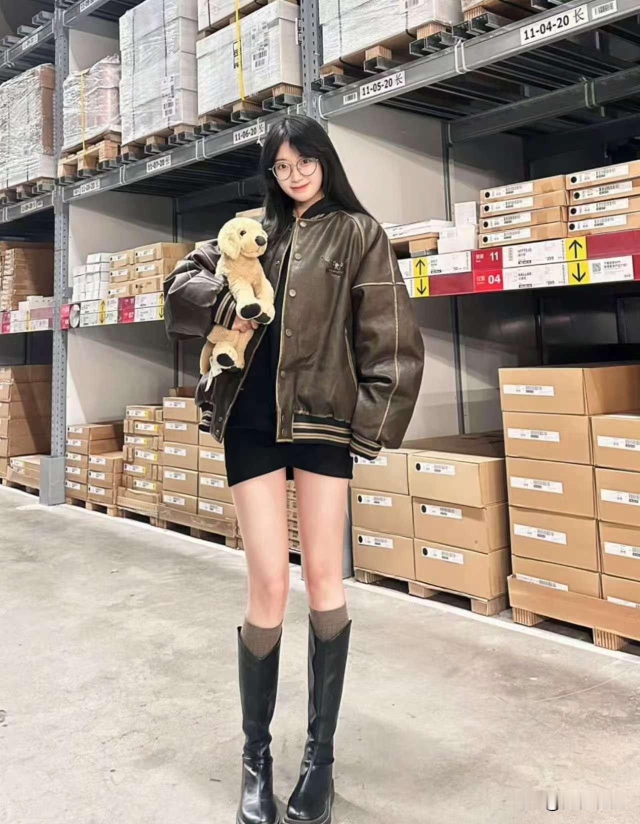 仓库超市里的时尚少女,抱着可爱毛绒玩具,穿搭超有范儿!📸👗👠