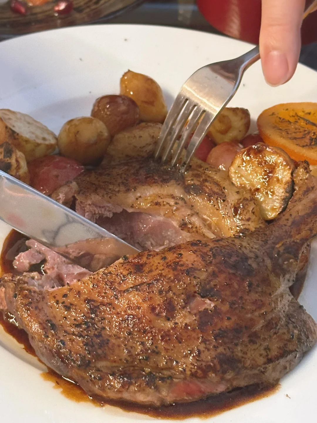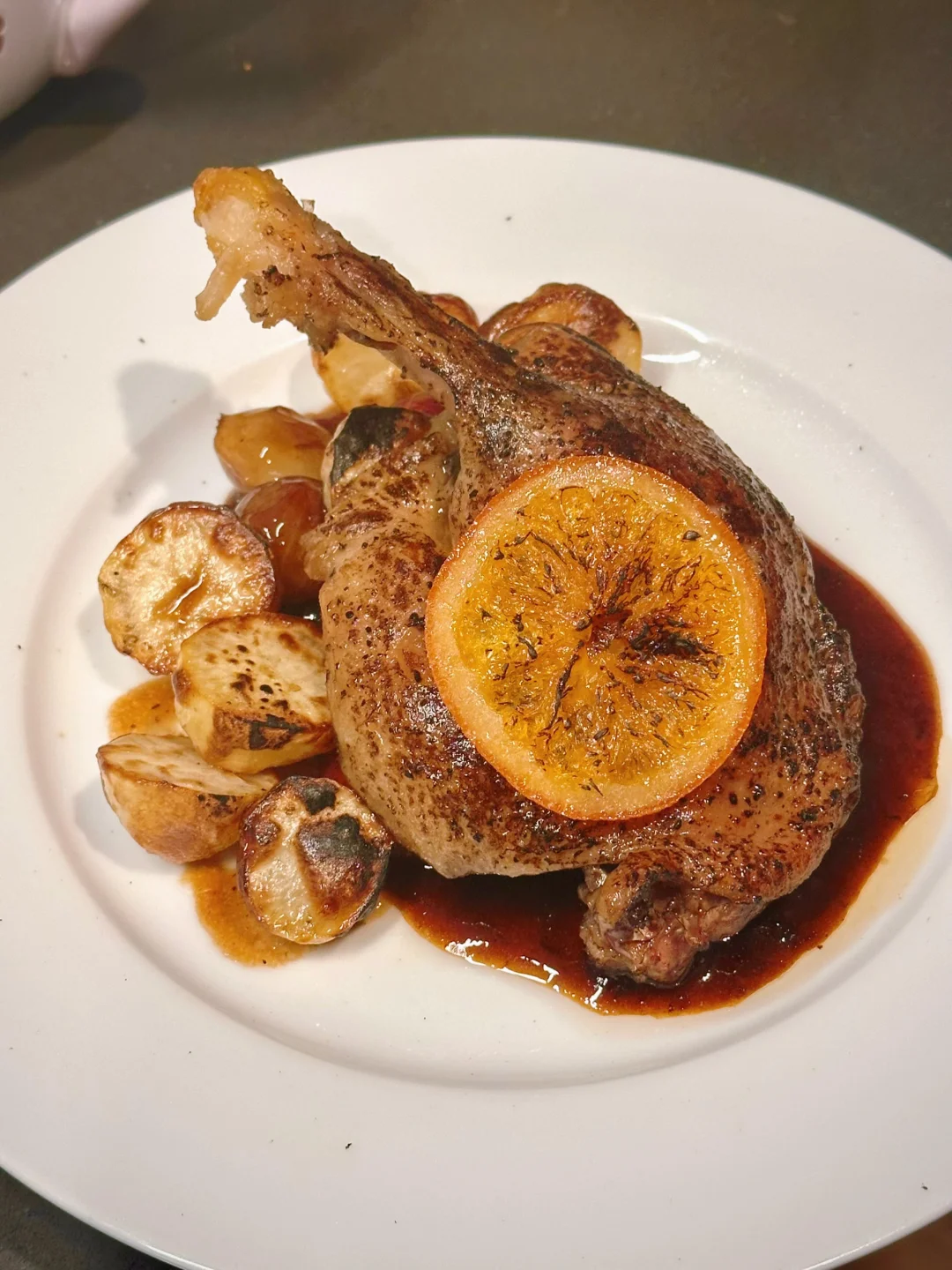 🦆男友启动了他的“新玩具”低温慢煮机做了鸭腿!中式酱鸭的调味配法餐的呈现,这个融合玩得很可以👍慢煮后软嫩的口感确实比我直接煎要优秀,而且用鸭油烤的小土豆特别酥香。感觉又可以称为招待朋友保留菜式,大家感兴趣我也可以出菜谱!