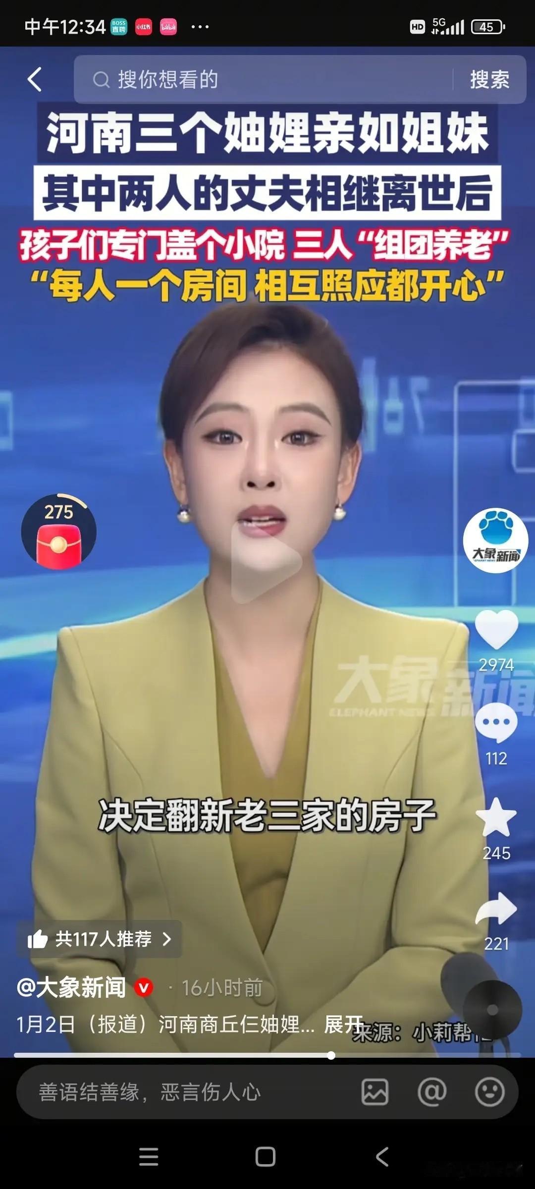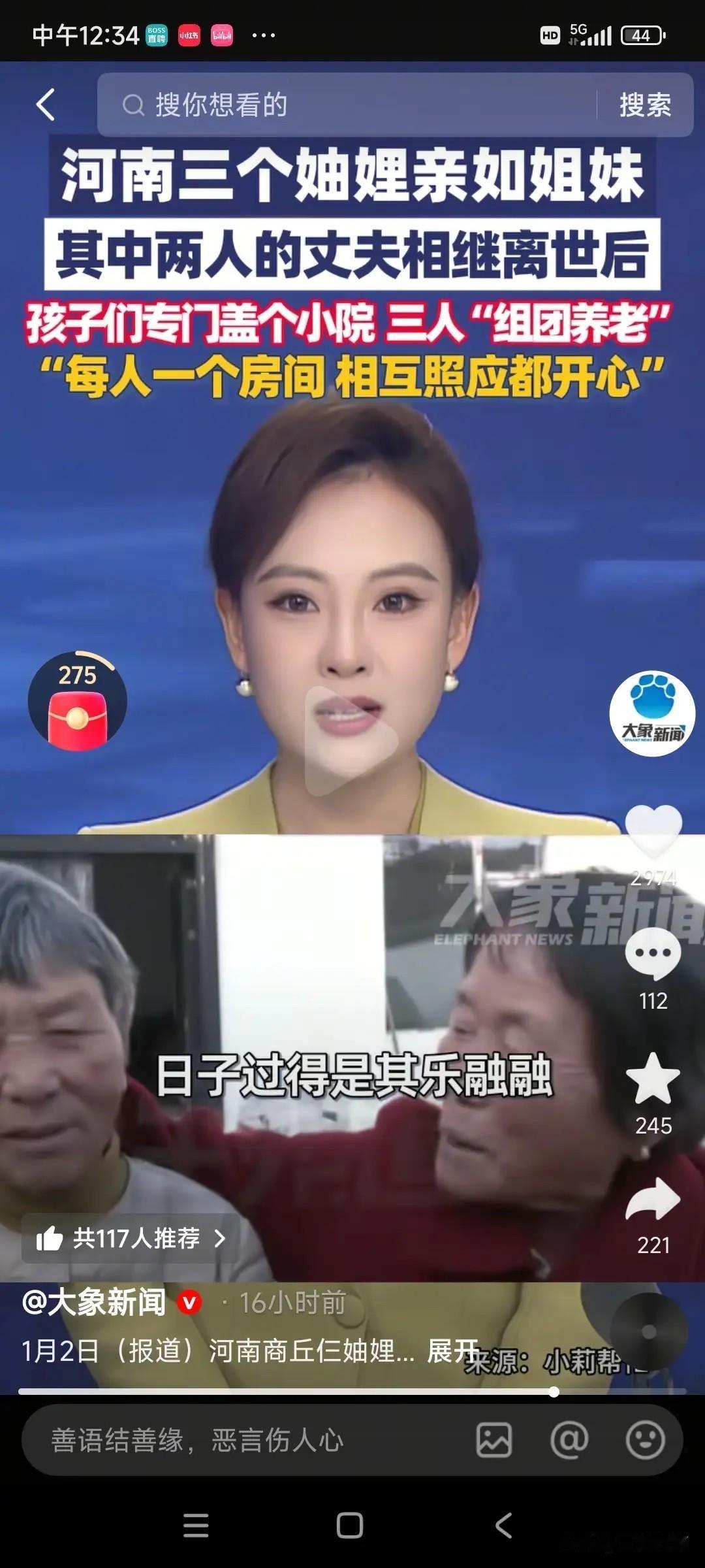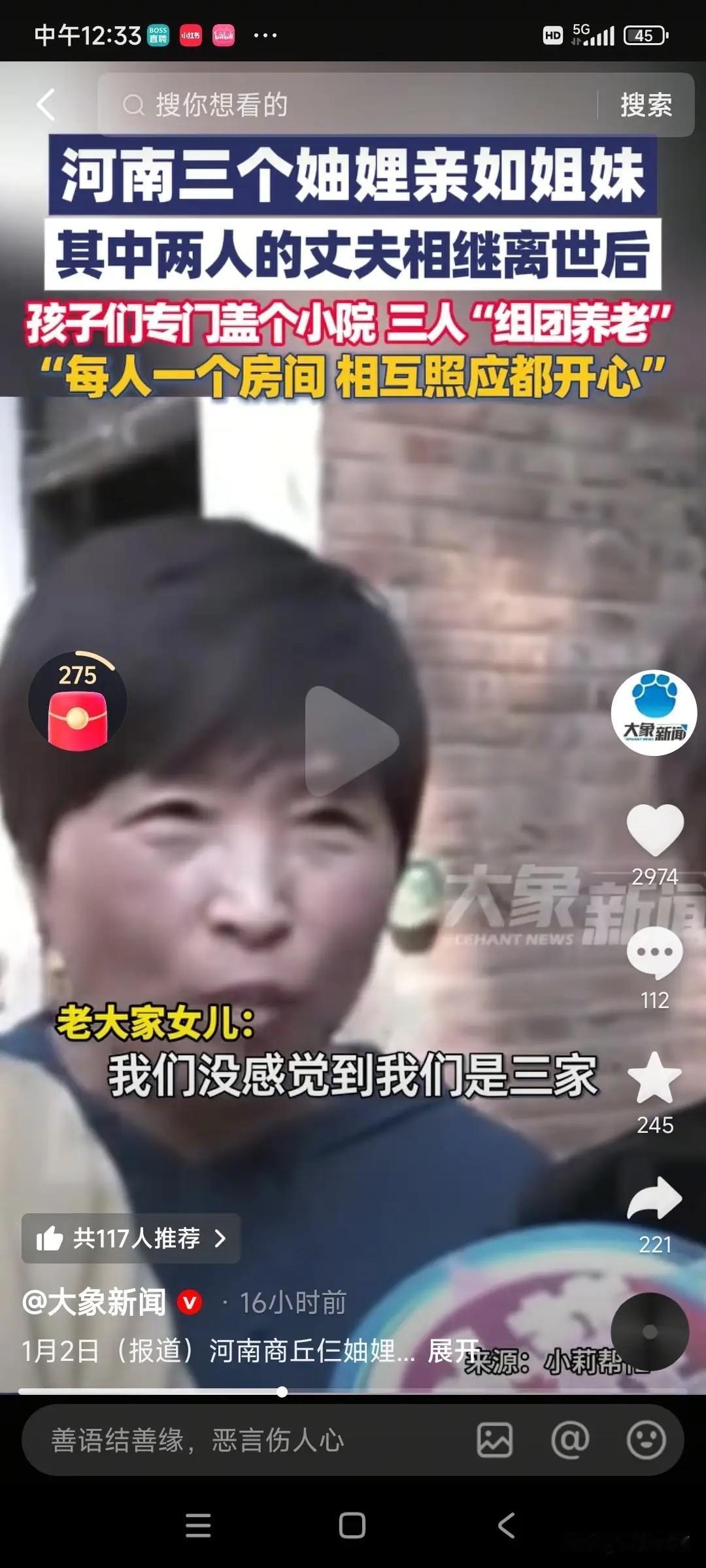 河南这3位妯娌,真的看哭全网!老大嫂82岁,老伴健健康康在身边;老二嫂75岁,早已没了依靠;老三嫂70岁,也早早失去老伴,本该各过各的,她们却抱团过日子,把平淡日子过成了别人羡慕的模样! 都说妯娌关系最难处,可这三位老人,却用几十年的相处,打破了所有人的偏见。老大嫂今年82岁,身子骨还算硬朗,耳不聋眼不花,家里大小事都能搭把手,老伴身体康健,俩人相濡以沫,日子安稳和睦。 老二嫂75岁,早些年老伴走得早,独自拉扯孩子长大,一辈子吃苦受累,老了身边没个知冷知热的人;老三嫂70岁,同样早早失去老伴,尝尽了孤单的滋味。看着两个弟媳孤零零的,老大嫂二话不说,就把俩人接到自己家里一起住,这一住,就是好多年。 平日里,老大嫂心疼俩弟媳,家里重活累活从不让她们沾手,老伴也特别支持,主动帮忙打理家务;老二嫂心细,家里缝缝补补、洗衣做饭的活全包了,把家里收拾得干干净净;老三嫂手脚麻利,每天早早起床买菜做饭,变着花样给大家做可口的饭菜,三人分工明确,相处得比亲姐妹还亲。 早上一起起床晨练,晒晒太阳唠唠嗑;中午围在一起吃饭,你给我夹菜,我给你盛汤,说说笑笑特别热闹;晚上坐在院子里乘凉,回忆年轻时的趣事,聊聊家里的晚辈,日子过得平淡又温暖。晚辈们来看望,看到三位老人相处和睦,也都特别放心,逢年过节一大家人聚在一起,其乐融融。 有人问老大嫂,为啥愿意带着俩弟媳一起过,老大嫂笑着说,都是一家人,打断骨头还连着筋,她们没了老伴,我多照顾点是应该的,一家人热热闹闹的,比啥都强。俩弟媳也总说,多亏了大嫂和大哥,不然自己一个人过日子,冷清又孤单,现在每天有人说话有人伴,比啥都幸福。 在这个人心浮躁的年代,这样的妯娌情太难得!没有勾心斗角,没有斤斤计较,只有互相体谅、彼此扶持,82岁大嫂用一份善意,温暖了两个弟媳的晚年,也让我们看到了亲情最本真的模样。 都说家有一老如有一宝,这三位老人,就是家里最珍贵的宝。她们用几十年的相处告诉我们,亲情从来不分你我,互帮互助才是一家人该有的样子。这样的暖心故事,值得让更多人看到!