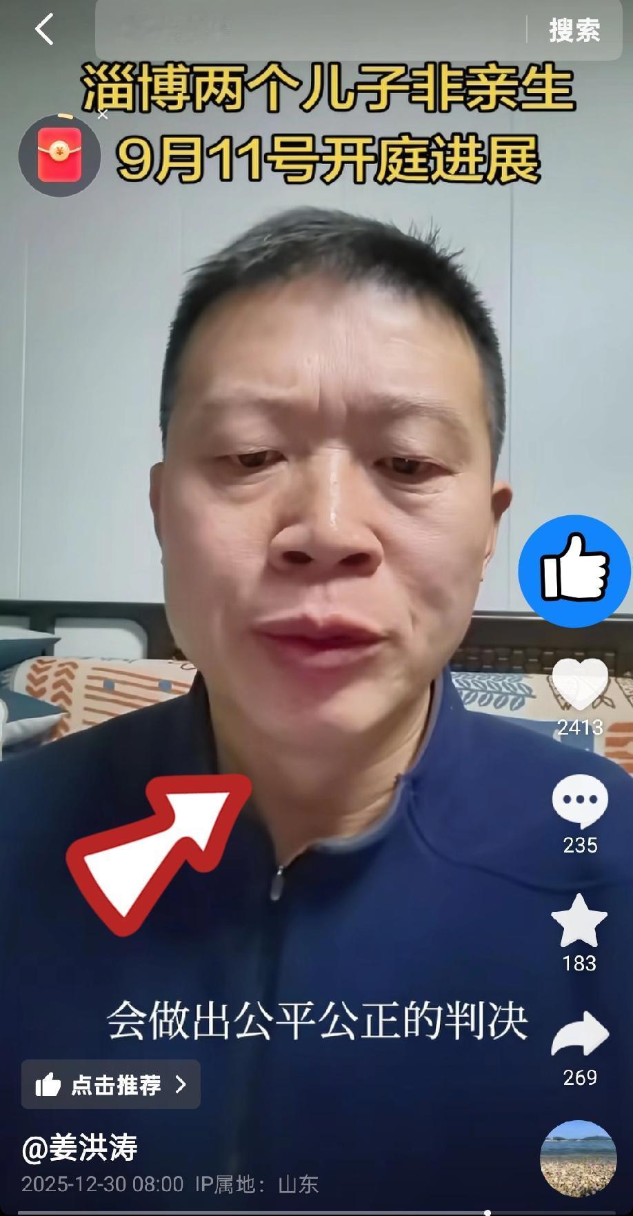 山东淄博两儿非亲生事件还没尘埃落定,大儿子姜某泽又跳出来抹黑姜红涛,妄图转移网友的视线。 元旦前,因为私信和留言太多,姜洪涛给关心他的网友汇报了房产案的进度,说判决还没下来,但是相信国家相信法院更相信会有正义。 简简单单的视频,却刺痛了姜某泽的心,他一边发好几个视频,想要抹黑老姜、转移大家的视线。更是发布一条“爆炸新闻”——老姜有亲生儿子了,快要出生了。 他以为他这么一说,网友们都会站在他的立场上批判老姜呢。可惜啊,可能所有正义的粉丝都是他心目中的“水军”,“水军”们都祝贺老姜终于要有亲儿子了。 而且关于老姜的家事,网友们并不关心。大家都关注3件事: 1.小姜的妈妈到底是不是洁白无瑕的白莲花,到底和村支书扯七扯八? 2.小姜这么顾左右而言他,坚持不做亲子鉴定,如果是亲生娃为啥不自证清白?如果不是亲生娃娃有什么权利管人家老姜家的家事? 3.如果姜母那么干净,小姜为啥乖乖地配合堂伯过户? 会说的不如会听的,其实,你嘴里口口声声所谓的水军,不过是拎得清是非的普通人。你费尽心机泼的脏水,只会折射出自己的龌龊算计。群众的眼睛是雪亮的,跳梁小丑的拙劣表演,终究掀不起什么风浪,只会沦为全网的笑柄!