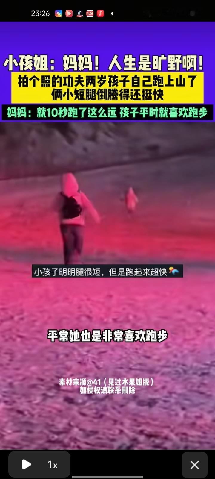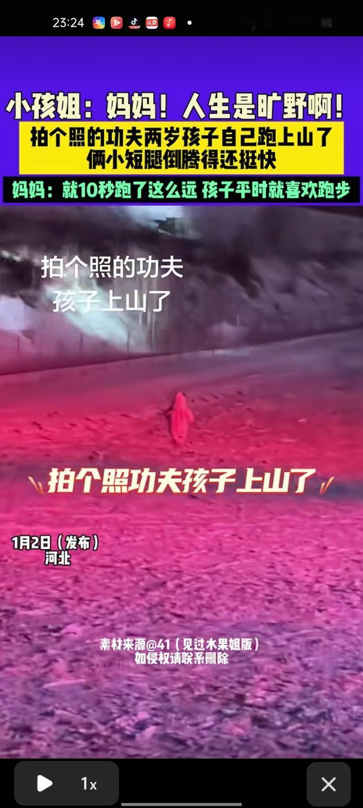 1月1日,河北张家口。女子发视频称,自己拍照的功夫,两岁孩子就跑上山了,两小短腿倒腾的还挺快。才十秒钟就跑了那么远,孩子平时喜欢跑步,最后孩子“迷途知返”跑回来了。