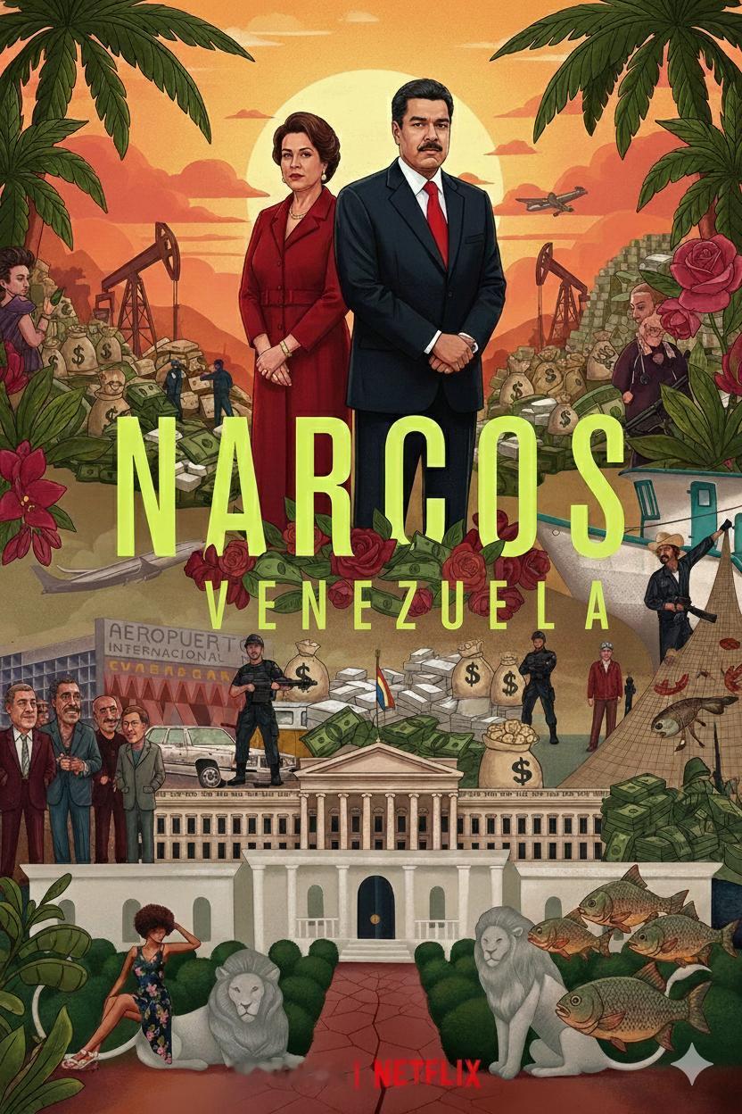 奈飞《毒枭》系列是不是又可以拍起来了,感觉比之前的哥伦比亚和墨西哥好看。委内瑞拉总统马杜罗被美国抓了,马杜罗被指控犯有毒品恐怖主义阴谋罪。(图三:用AI生成的海报)