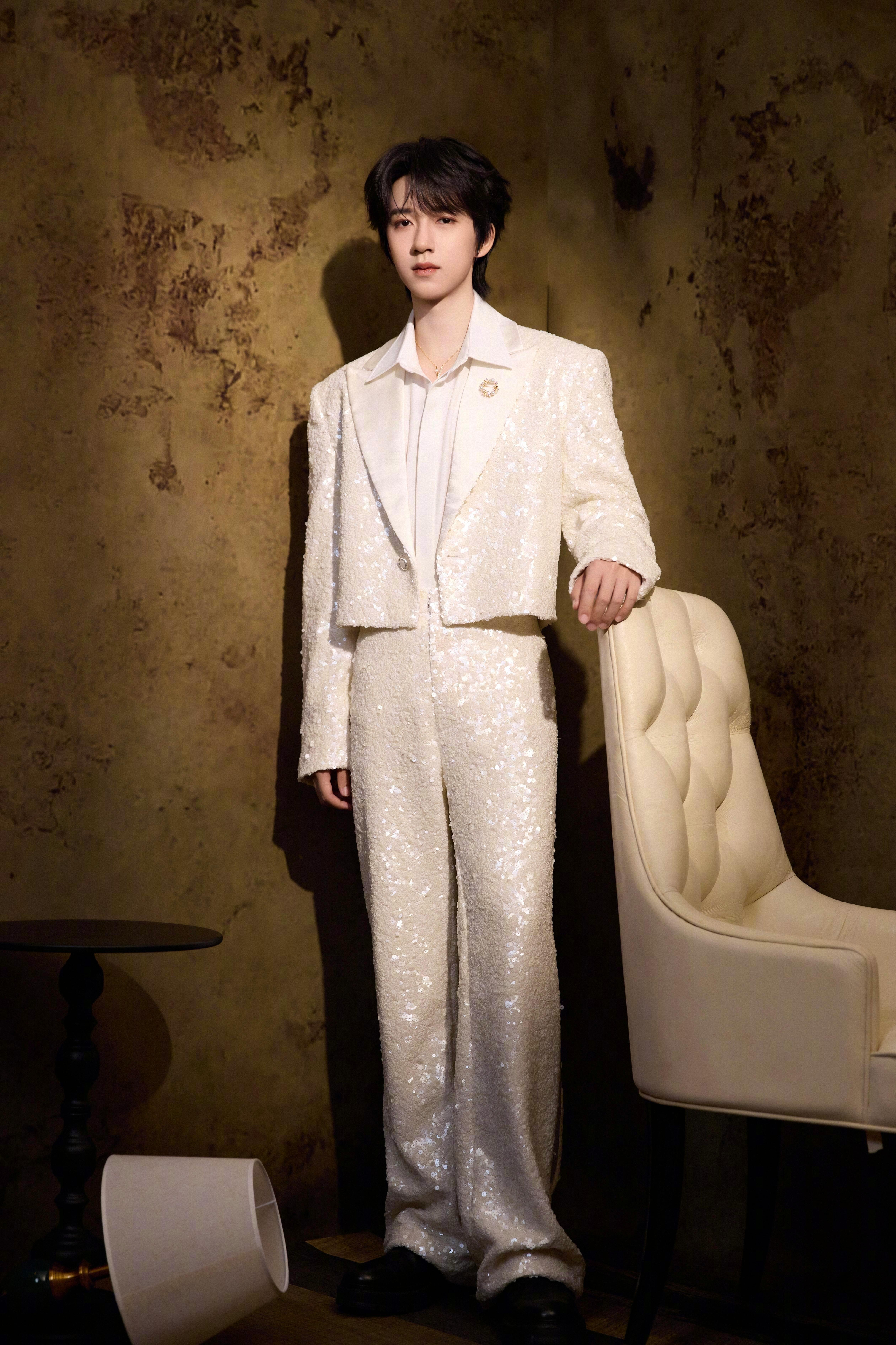 贺峻霖冬日系列白色恋人贺峻霖出席王者荣耀赛事决赛造型,身着短款戗驳领亮片套装搭配白衬衫,佩戴御木本MIKIMOTO珠宝,贵气闪耀,满满冬日白色恋人感