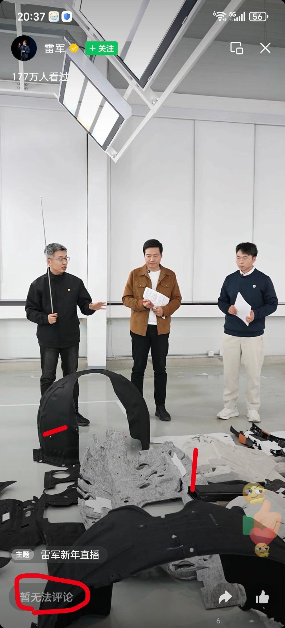 雷总在2026年第一场直播,拆解小米YU7。想留个言,发现无法评论,刚开始以为是因为我没关注账号,加了关注,还是无法评论.......