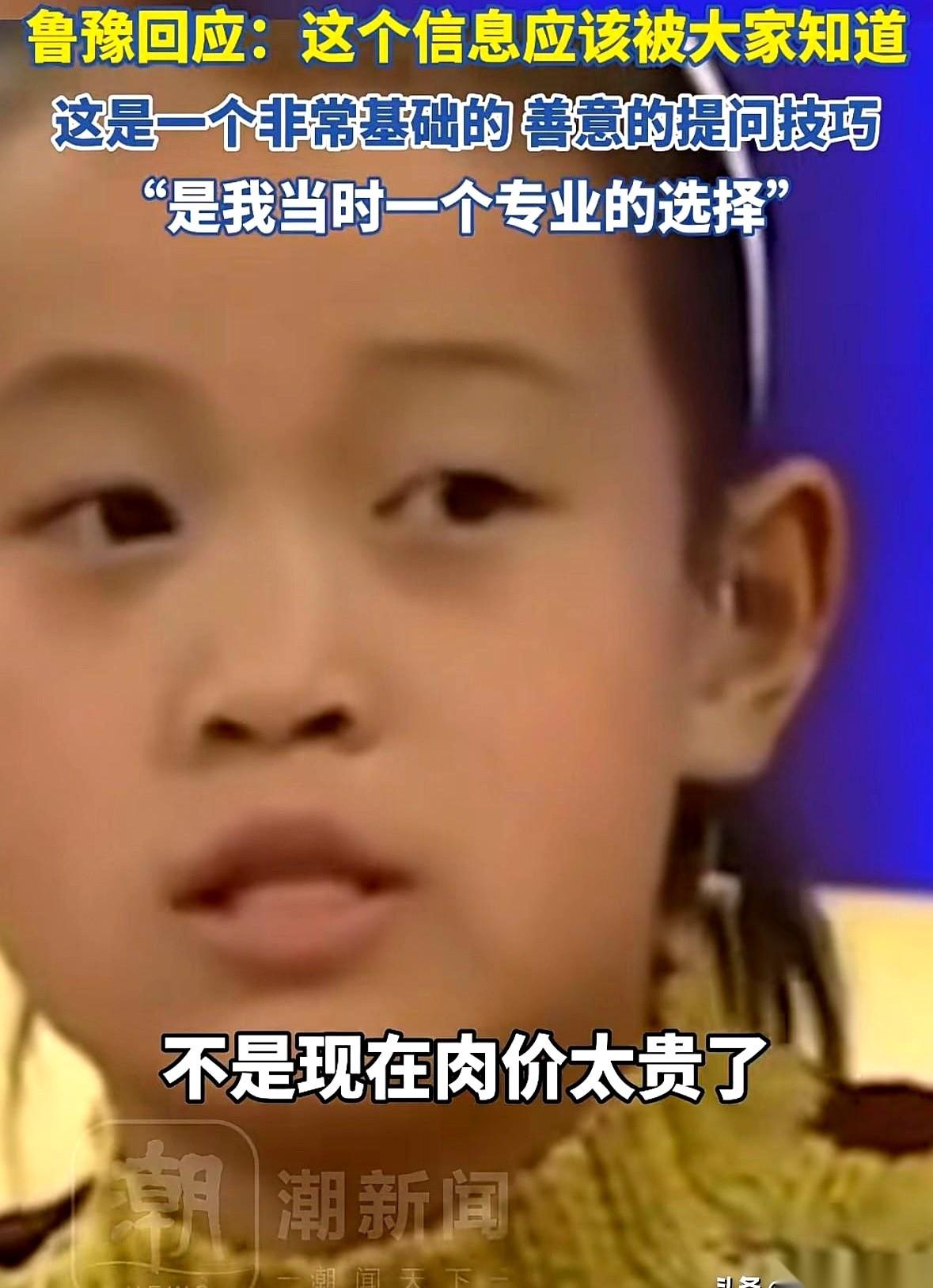 鲁豫终于回应了。 为啥对山里孩子问“为什么不吃肉”,她说那是个“善意的提问技巧”,觉得网友的解读很“荒谬”。 我信她是善意的。 但说真的,这事儿最扎心的,从来不是她坏不坏。 而是一种“无知”的残忍。 一个天天吃肉的人,可能真的无法第一时间理解,世界上还有人吃不上肉。 所以她会下意识地问“为什么不”,而不是“吃得上吗”。 这一个字的差别,背后是两个世界。 一个是把吃肉当日常,一个是把吃肉当奢望。 这根本不是什么“提问技巧”能解释的。 这是本能。 是生长环境在你身上刻下的烙印,让你在面对不熟悉的世界时,第一反应就是用自己的逻辑去套。 所以,公众的愤怒,从来不是针对她个人。 大家愤怒的,是她那句话,像一把钥匙,咣当一下,打开了那个展示贫富差距的、血淋淋的房间。 而她自己,好像还站在门口,奇怪大家为什么忽然都沉默了。 说公众的反应“荒谬”? 不。 公众的情绪,有时候就像一面特别诚实的镜子。 它照出了那道鸿沟到底有多深。 你不能因为镜子里的倒影不好看,就说镜子是坏的。 真正高级的共情,不是去问“你为什么不”,而是打心底里知道,有无数的“不能够”。