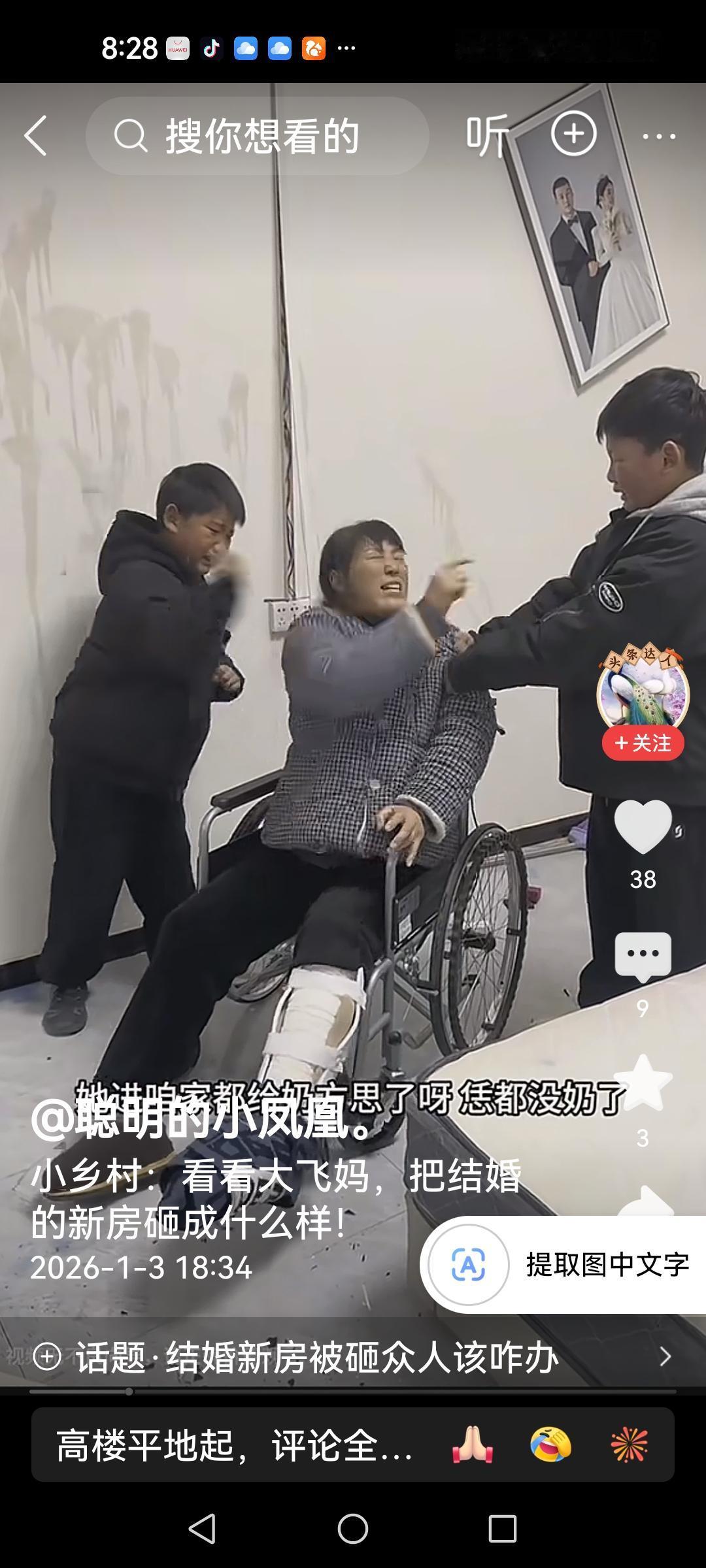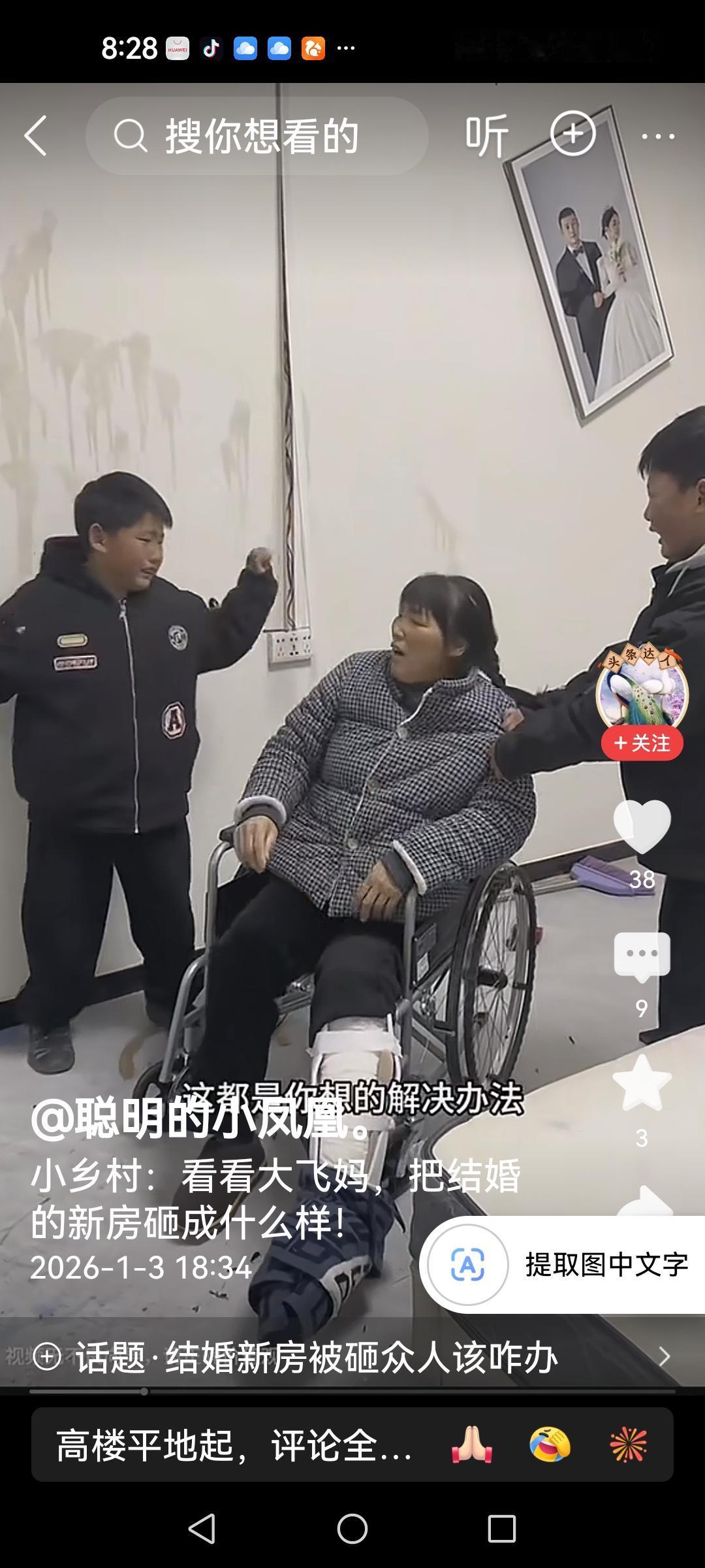 大飞妈疯了 大飞妈把还差2天就结婚的婚房给砸了,一地的玻璃碎渣,喜字也拽了下来,结婚照片也扔了一地,两个小孩拦都拦不住,理由特别荒谬。 离家出走的刘红摔了腿之后,前儿媳娜娜帮她算了一卦,说高锐克婆婆,会把她克死的,说大飞喝了四口井水,得结四次婚。本来她就不喜欢高锐,现在经过娜娜别有用心的搅和使得元月6号的婚礼蒙上了阴影。 好事多磨,勤劳能干的高锐遇上了天下第一恶婆婆。结婚后将无宁日。 快分开吧,别和她一起住了,俩口子打工远离吧?又舍不得瘫痪的娘家妈,和两个孩子,还有鸡场。生活真是难难难。