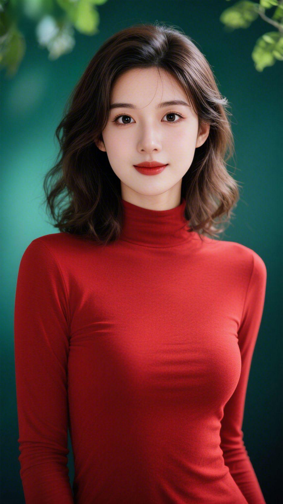 《红衫的轻暖日常》 正红高领衫裹着软润肌理,似揉开的暖色调轻贴肩颈,衬着墨绿背景,是浅光里浸了柔的鲜活。 她立在淡色光影中,卷发垂落沾着风的软,神色是恰好的舒展,像窗边漫开的光斑。这不是刻意妆点,是日常里自然的松弛:是衣料贴肤的柔,是色彩衬出的暖,是目光相触的瞬间,空气里漫开的轻悦气息。 日常的精致从不是华丽堆砌,是这恰好的色调,让平凡时刻裹着细碎的暖,像晚风轻掠枝叶的柔。 正红轻暖穿搭灵感 日常舒展风格