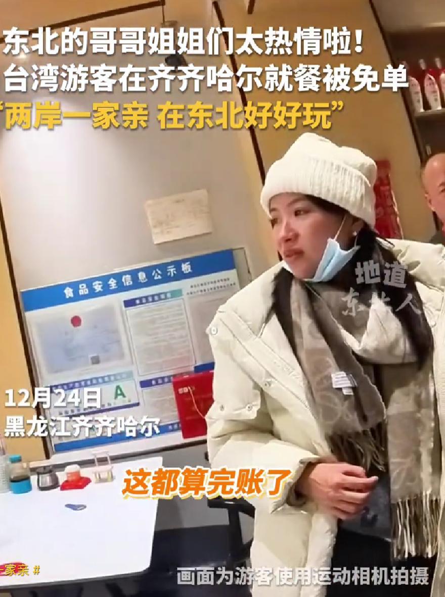 不愧是东北人!台湾女生去东北玩,到餐馆吃饭后准备结账,刚发准备扫码,就被老板挡住,女生很纳闷,老板解释,她吃的东西已经结过账了,原来,邻桌几位大哥知道她来自台湾后,抢先一步把她的单给买了,大哥超豪爽:"今天晚了,要不就给你炖大鹅了。" 在那收款码的一扫一晃之间,发生的并不是一场关于金钱的交易,而是一次毫无防备的情感撞击。 不久前,两个利用假期去东北游玩的台湾姑娘,站在一家人气颇旺的餐馆前台,手里攥着手机,屏幕上的付款界面早就调了出来。正当其中一个姑娘要把手机对准那黑白相间的二维码时,一只大手突兀地横插进来,严严实实地挡住了摄像头。 这动作太快,姑娘俩当时就愣在了原地。 人的第一反应往往是困惑:难道是网络不好?还是刚才的操作有什么违规的地方?面对老板这突如其来的“阻止”,俩人面面相觑,心里正七上八下地犯嘀咕,是不是这台机器坏了。还没等她们开口询问,老板先乐呵呵地发话了,轻描淡写地抛出一句让她们大脑瞬间宕机的解释:这单不用买了,早就有人替你们结完了。 身在异乡,举目无亲,素未平生,这饭钱怎么可能有人抢着付?这剧本走向实在太超纲,姑娘们满脸写着不可思议,非要打破砂锅问到底——到底是谁干的?老板这才把手往大厅斜对面那一桌指了指。 顺着手指的方向看过去,那边坐着几位穿着随意的东北本地大哥大姐,看着这边发现了真相,便大大方方地挥手致意,脸上全是那种恶作剧成功般的爽朗笑容。 这背后的“预谋”其实特别简单又特别细腻。原来,刚才姑娘们大快朵颐的时候,那一桌的本地食客就听出了她们软糯的口音。对于东北人来说,那声调一入耳,就能瞬间识别出这是来自宝岛的同胞。这几位大哥大姐没有冒失地上前打扰,而是悄摸地找老板先把账给平了。 最绝的是那个特别的嘱咐:千万别提前告诉她们。一定要等她们把筷子放下了,酒足饭饱准备走了,再说这事儿。为啥?就怕俩姑娘要是知道有人买单,吃饭会有心理负担,那就吃不痛快了。这份体贴,真的是把“关照”两个字揉碎了融进饭菜里。 得知原委后,刚才还因为这顿地道东北菜分量十足、吃得肚圆而感到惬意的姑娘们,瞬间有些局促起来。那种被巨大的善意击中的感觉,让人鼻子发酸。两人赶紧收起手机,快步走到大哥大姐那桌前,真诚地深鞠了一躬。除了连声道谢,那一刻似乎任何语言都显得苍白。 面对这份慎重的谢意,那一桌的大哥们反应却是一如既往的东北式“豪横”。一位穿着格子衫的大哥连连摆手,那语气就像是在招待自家亲戚:“听出你们是台湾来的,到了咱这地界,那就是回家了!请家里人吃顿便饭,这算个啥事?” 这几句话说得虽然随意,但接下来那句带着遗憾的补充,才真是把东北人的待客之道体现得淋漓尽致。大哥咂摸了一下嘴,特别惋惜地说:“也就是今天太晚了,时间来不及,要不然非得给你们整锅铁锅炖大鹅!那才是硬菜,得让你们好好尝尝!” “炖大鹅”,这道东北菜里的扛把子,在这个语境下,早就超越了食物本身的意义。它成了一种最高规格的情感表达,一种恨不得把家里最好的东西全掏出来的急切。在他眼里,仅仅帮着结个账甚至都显得有点“怠慢”了。 那两位台湾女生在听到这句话时,眼眶再也没忍住湿润了。从进门时被满屋子的菜香吸引,到惊叹于菜码的巨大,再到这一刻心里的滚烫,这顿饭的滋味,早就超越了味蕾。大哥那句没怎么修饰的大白话——“2300万人回祖国啊,两岸一家亲”,就这么直愣愣地砸在人心坎上,比什么华丽的排比句都有力量。 其实,这种看似“自来熟”的热情,并非毫无来由。往上倒腾几代人,这片黑土地上的居民大多是“闯关东”过来的。在那个冰天雪地的年代,生存不仅靠蛮力,更靠人与人之间的抱团取暖。那种刻在基因里的互助本能,那种对“自家人”不讲道理的护犊子劲头,历经岁月也没被冲淡。当乡音成为识别代码,那份潜藏的血脉开关就被瞬间按下了。 没有什么刻意制造的煽情,也不需要宏大的叙事背景,这就是发生在充满烟火气的餐馆里的一件小事。一桌陌生人,一次没有预兆的买单,几句关于“炖大鹅”的碎碎念。 但也正是这几句碎碎念,把那个虽然没有端上桌、却一直热在心头的大鹅,变成了这两位台湾女生一辈子都忘不了的味道。对于她们来说,无论以后去过多少地方,这顿“没花钱”的晚饭,这份跨越海峡却零距离的亲情,都将是最滚烫的记忆。下回再想起东北,哪怕隔着千山万水,心里头想必也是热乎乎的。