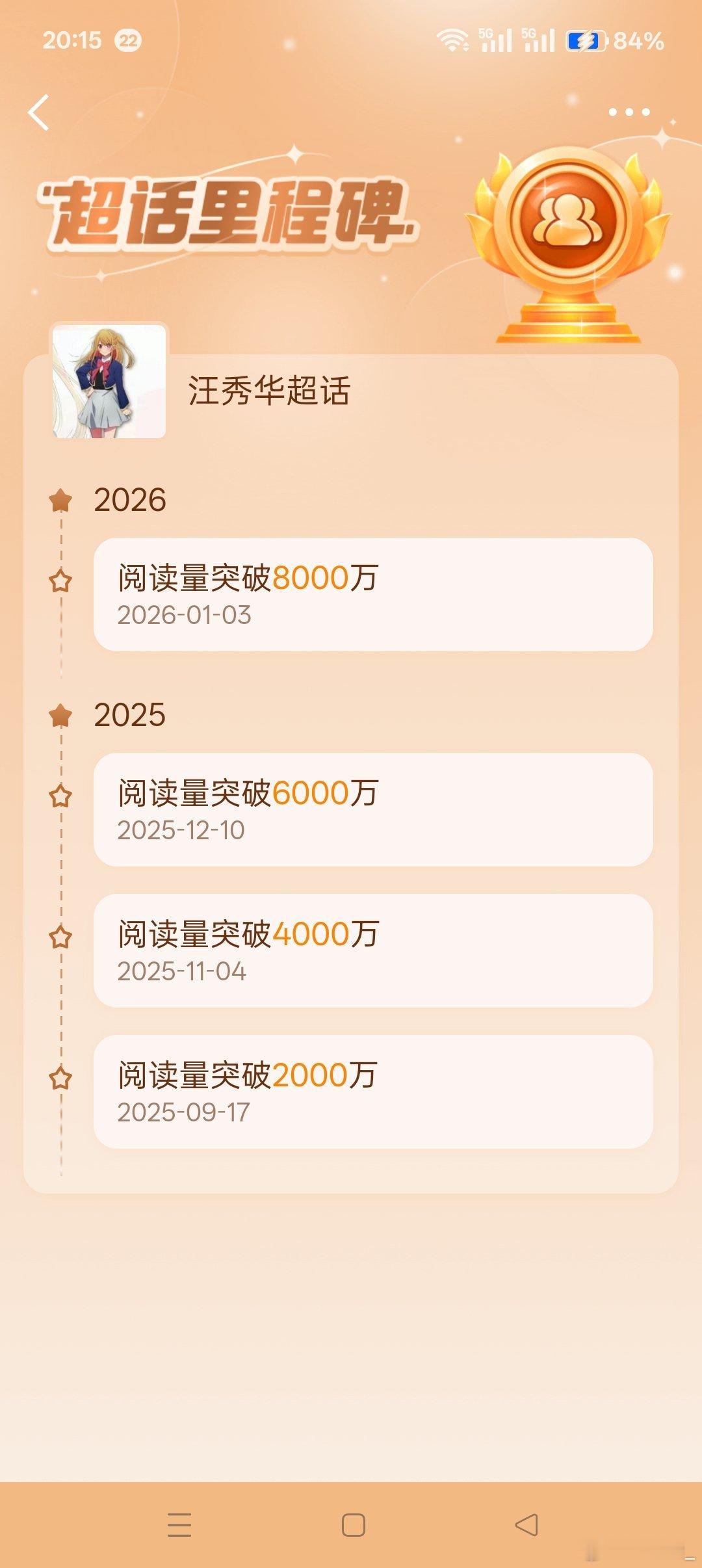恭喜汪秀华超话阅读量破8000万
