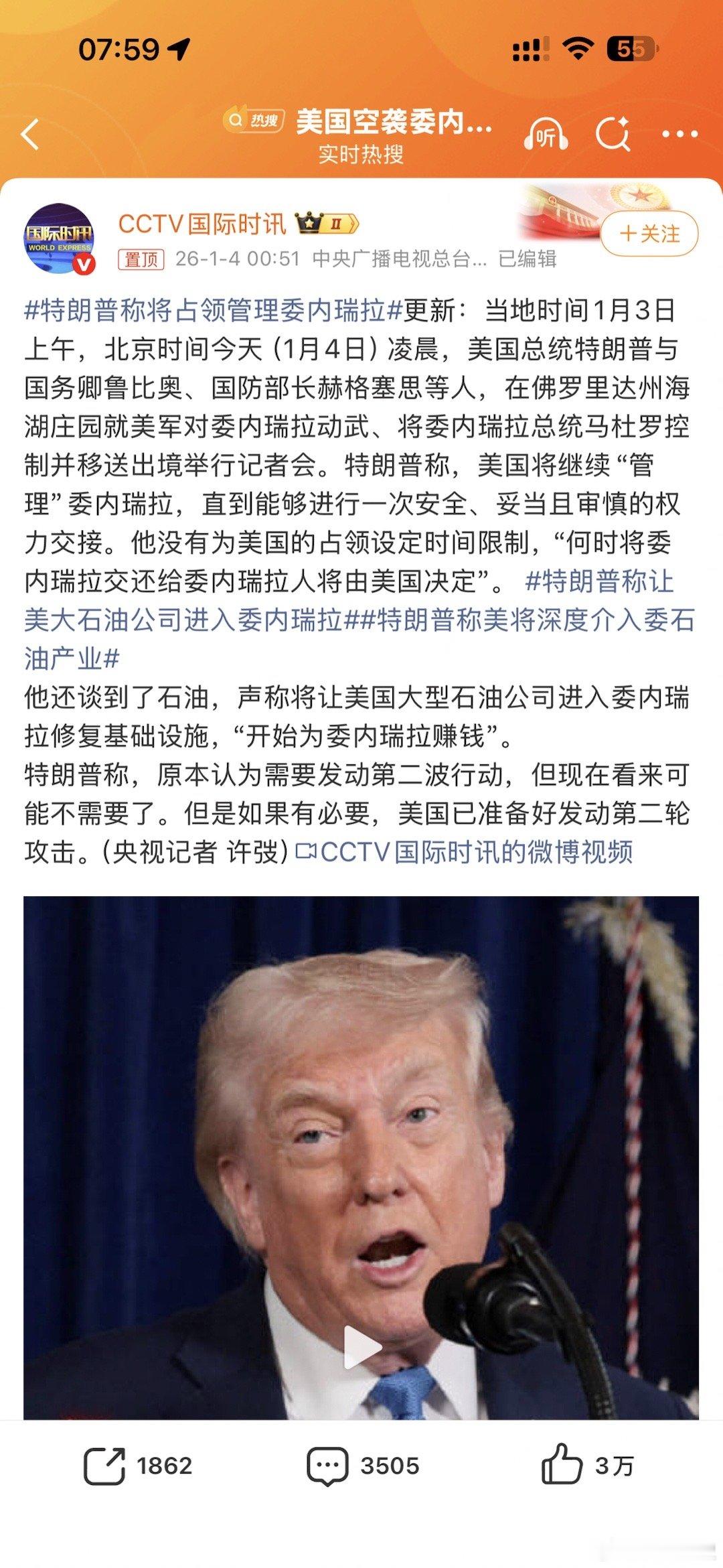 特朗普称将占领管理委内瑞拉美国的嘴脸这次是彻底展现出来了,面对小国直接武力动手抢,丝毫不遵守国际秩序,果然拳头硬才最重要的