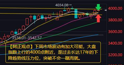 【20260104 A股市场分析:下周市场波动有加大可能】 2025年最后一个交易日,A股三大指数涨跌不一,市场仍属于良性状态,获利资金并未撤离旁观,但也未收回4000点,总体已经为2026年留出了足够的上攻空间…… 【下周分析】“春季行情”有望逐步展开,但过程可能不会一蹴而就,市场波动有加大可能。核心观点:多空因素交织,震荡中寻找机会。 总体趋势:在积极因素支撑下仍有向上动力,但需留意 4000点关口的压力及可能因数据、业绩因素引发的波动。 技术面上,目前A股处于高低切换的关键时刻,切换需要时间,从大基金板块走势看,该板块在去年国庆节后见到高点,一直震荡近三个月,节前最后一个交易日该指数再次接近高点,反弹目的已超额完成,元旦过后,会有一个较大幅度的回调,之后才会有上涨。 指数层面:上证指数4000点附近,是过去长达17年的下降趋势线压力位,突破不会一蹴而就;下方最强支撑在3700点附近,这是前期突破的10年箱体顶部,也是当前震荡区间的下沿。预计指数短期及中期调整也难以到达。总体看,下周及整个1月份,指数会在核心震荡区间3800-4000点反复震荡。 热点方向:短期及整个1月配置建议,关注科技成长主线、顺周期与资源品主线两个重点方向。 1、科技成长主线:半导体/电子,AI算力与存力需求旺盛,行业有望维持高景气。半导体周期上行或持续至2026年上半年;AI算力与数字经济,产业趋势明确,是科技自立的核心领域;电力设备(光伏、电池),行业供需格局持续修复,年报业绩改善预期强。 2、顺周期与资源品主线:有色金属,受益于美联储降息预期和下游新兴领域需求,具备战略稀缺性,尤其是工业金属、战略小金属(如钨、锑、稀土);机械设备,制造为升级与机器R产业(人形机器R)发展共振,自动化设备景气度高;基础化工,在“反内卷”政策下行业供给出清,部分细分领域有望迎来盈利拐点。 事件机会:1月有多个重要产业会议召开,可能对低空经济、商业航天、AI应用、6G通信等主题板块产生短期催化。 操作策略:把握主线、逢低布局,关注业绩验证、保持均衡配置。 【综合判断】下周市场波动有加大可能,大盘指数上行的4000点附近,是过去长达17年的下降趋势线压力位,突破不会一蹴而就。总体看,下周及整个1月份,指数会在核心震荡区间3800-4000点反复震荡,难有大的上涨。 我写精品,你来点赞,相互支持、携手共进。 (个人观点,仅供参考,据此操作,责任自负)