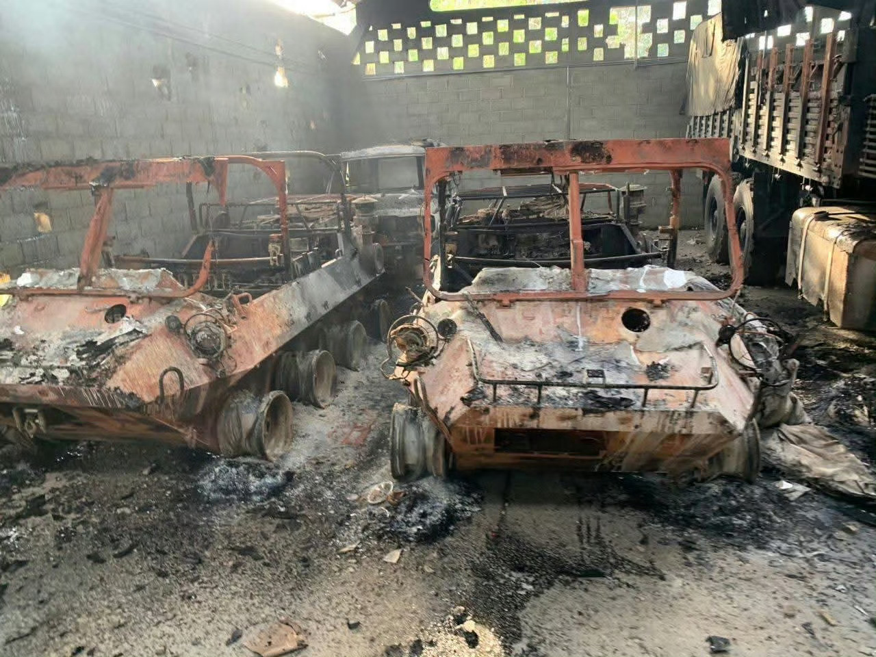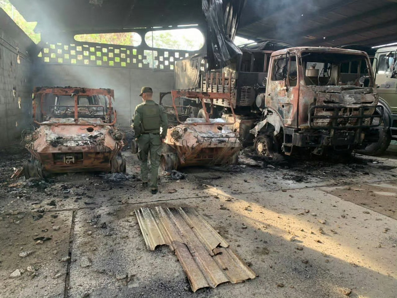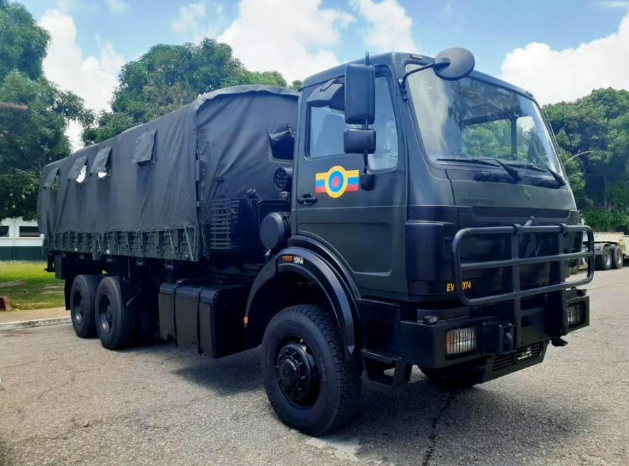 委内瑞拉蒂乌纳堡军事基地被美军摧毁的中国北方工业CS/VP-4“山猫”全地形车和北方奔驰NG2629型6×6轮式卡车 。该基地是国防部和陆军司令部所在地。外交部回应美对委军事打击热点现场特朗普称已抓获委内瑞拉总统