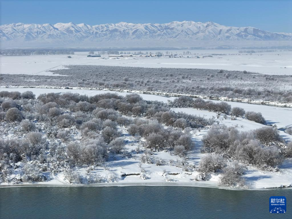 这是1月3日拍摄的新疆昭苏湿地公园一角(无人机照片)。新华社记者胡虎虎摄