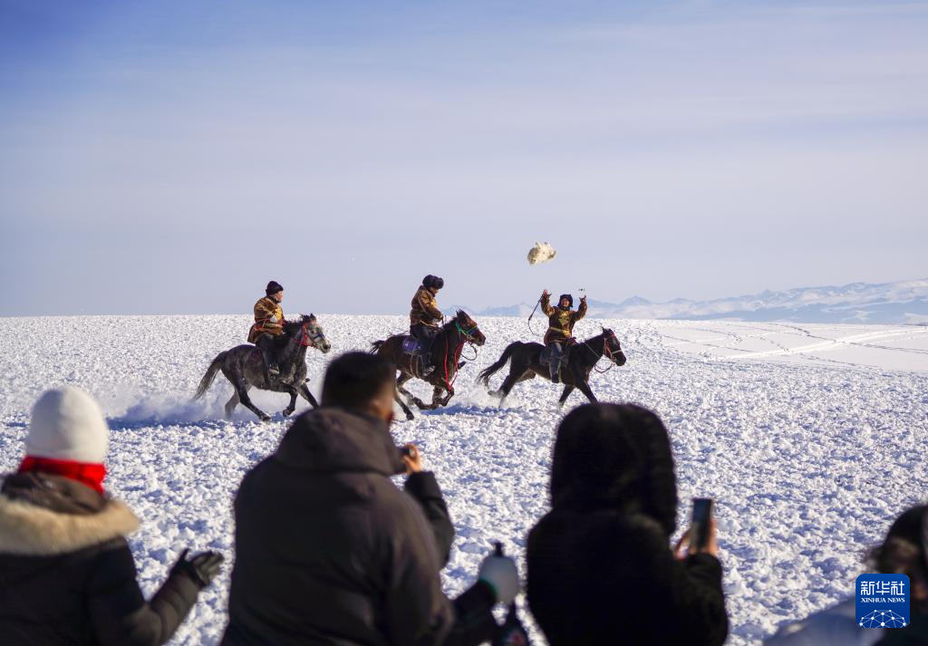这是1月3日在新疆昭苏湿地公园拍摄的传统民俗“叼羊”表演。新华社记者徐宏岩摄