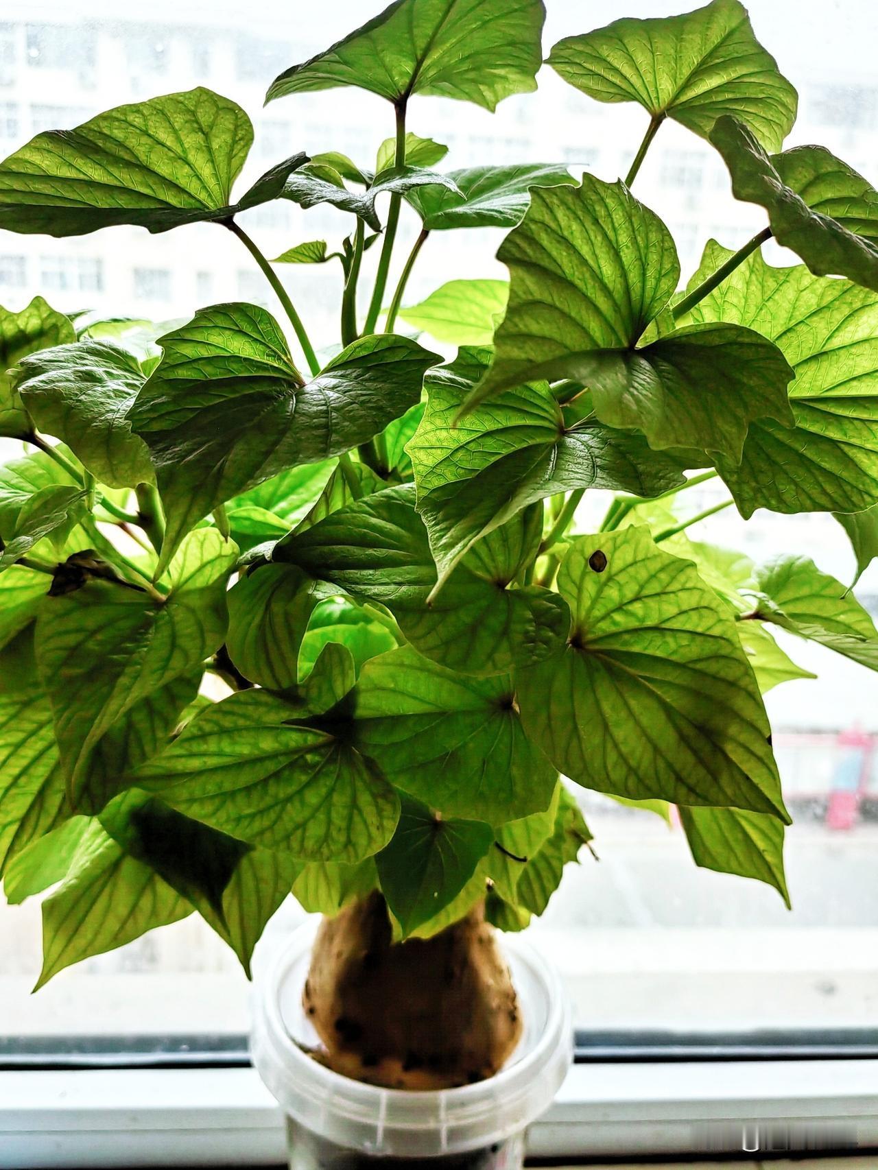 友你来猜猜这是什么? 我的水培长得如此茂盛。 这可是我水培的红薯, 长得枝繁叶茂,既能观赏又能食用。 是不是很漂亮呀? 煮面汤放点红薯叶,纯天然绿色又有营养。 我的园艺成绩单榜首, 就是水培的红薯叶!