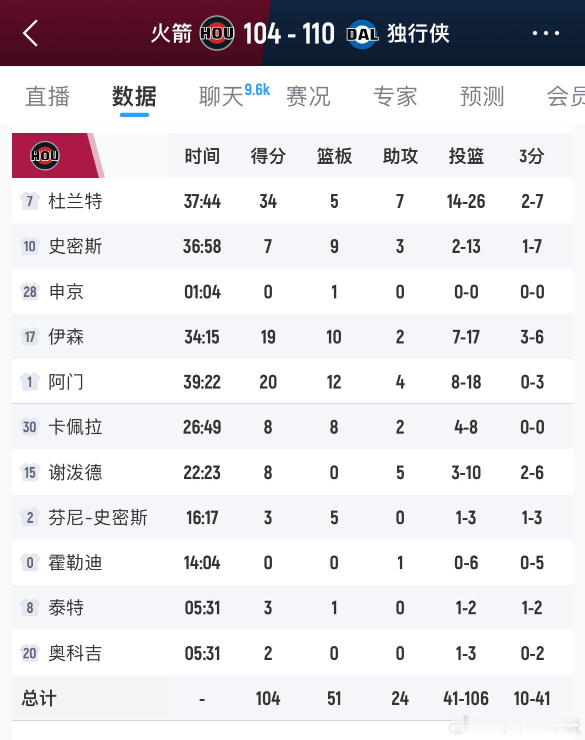 独行侠110-104战胜火箭结束连败,同时终结后者的四连胜!火箭胜场差已与湖人持平火箭vs独行侠