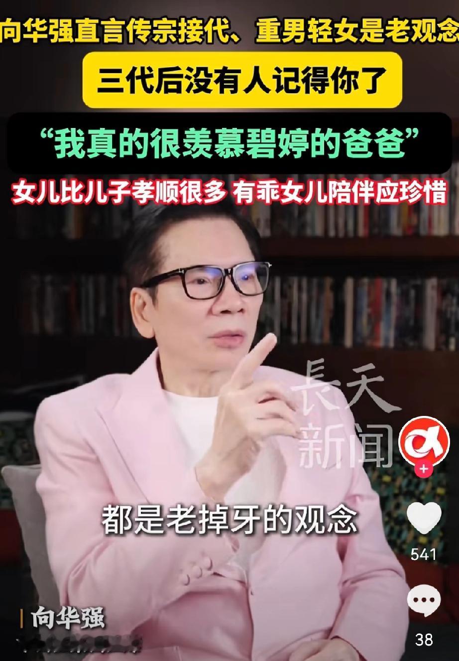 向华强说,“千万不要重男轻女,我现在才意识到女儿比儿子孝顺太多了。” 因为看到郭碧婷,他们家三个女儿,都对爸爸比较好,郭碧婷是老大,可是她有本事嘛, 只要郭爸爸不舒服,郭碧婷是不管多忙都要去医院的,当然也可以让保姆陪着去,但是郭碧婷都是亲自去的,那就是不一样的,所以他非常羡慕郭爸爸,而且重男轻女,传宗接代都是老思想了,三代之后没有人会记住你的。 向华强说得太对了,大多数情况下,女儿比儿子孝顺的多, 你看看医院里面,最后陪床的,都是女儿,哪有儿子, 说得是养儿防老,但是说真的,这话没啥用, 我周围的亲戚里面,都是儿子的家庭,反而有点鸡飞狗跳, 有女儿的家庭,都是和和睦睦的。