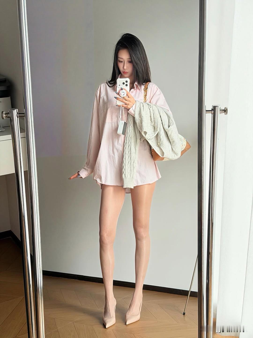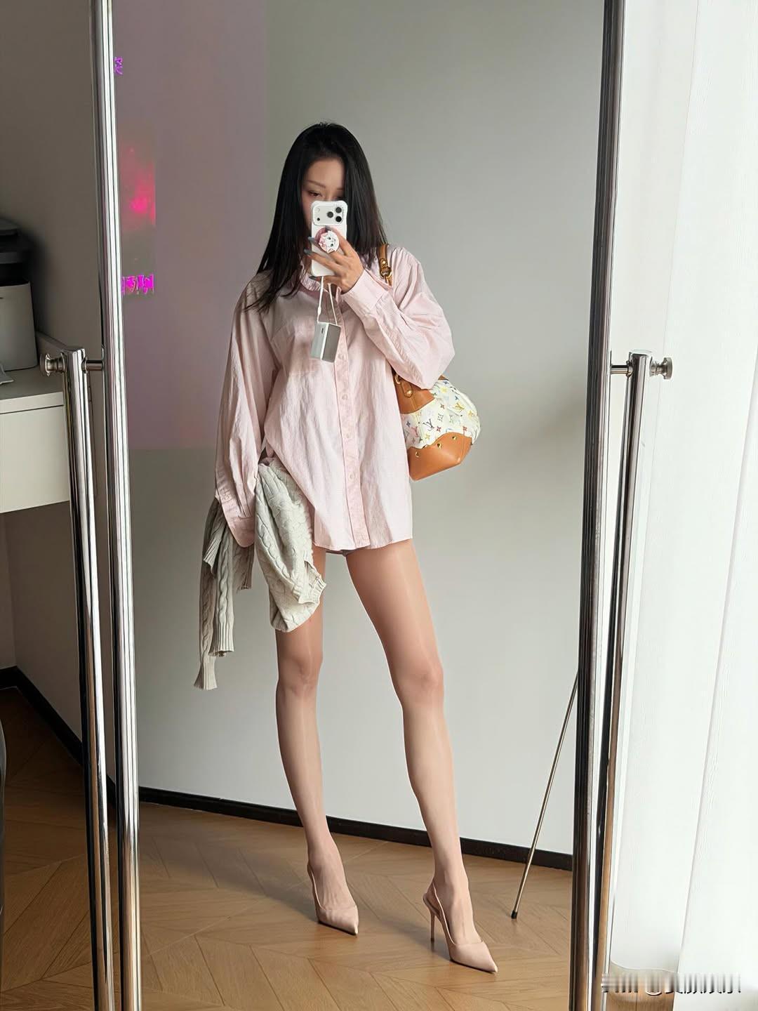 粉色衬衫+短裤,搭配高跟鞋,清新又时尚!