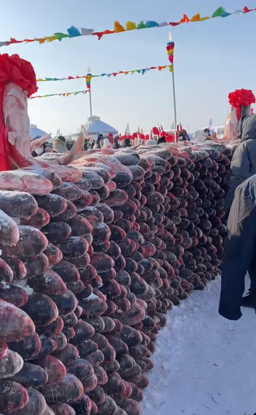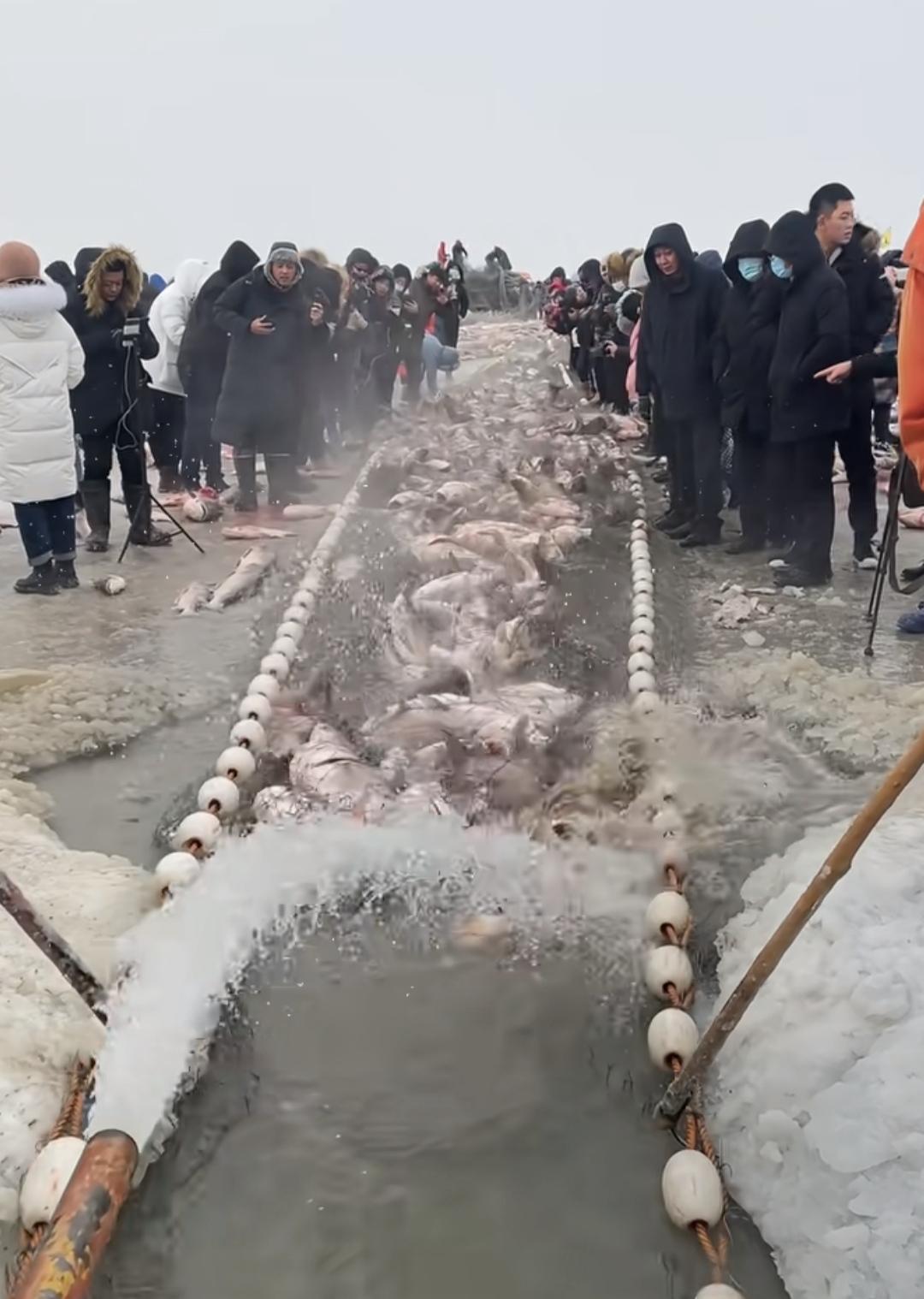 查干湖的鱼销售挺好的,没有像一些博主说的出现下滑。 关于“洗澡鱼”,早在去年三月份,人家松原官方用数据进行了辟谣, 查干湖年捕捞量:约2370吨,捕大放小,捕捞量仅占湖中鱼类总量的10%左右,而且每年还要投放约1000万尾鱼苗。 根本不用担心鱼的产量。 而且,当地还出重拳打假,坚决保护核心品牌。 当然,附近有些小湖泊和养鱼户也想借东风,搭上冬捕经济带,形成规模效应,吸引更多游客来消费,这是一个良性循环。 这大鱼非得铁锅来炖,要是能搭配着大铁锅一起销售就好了。