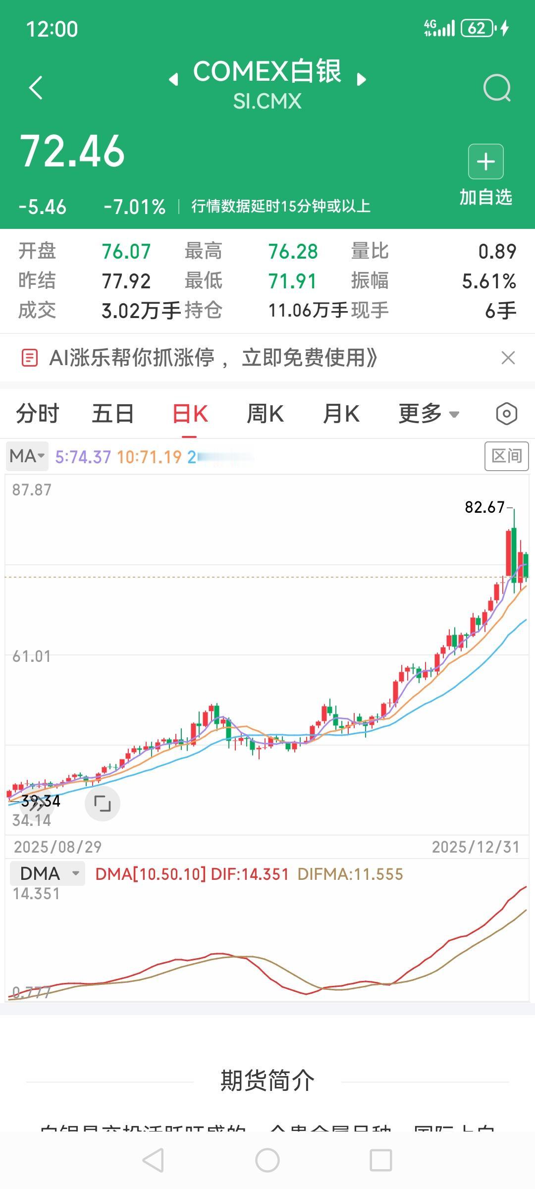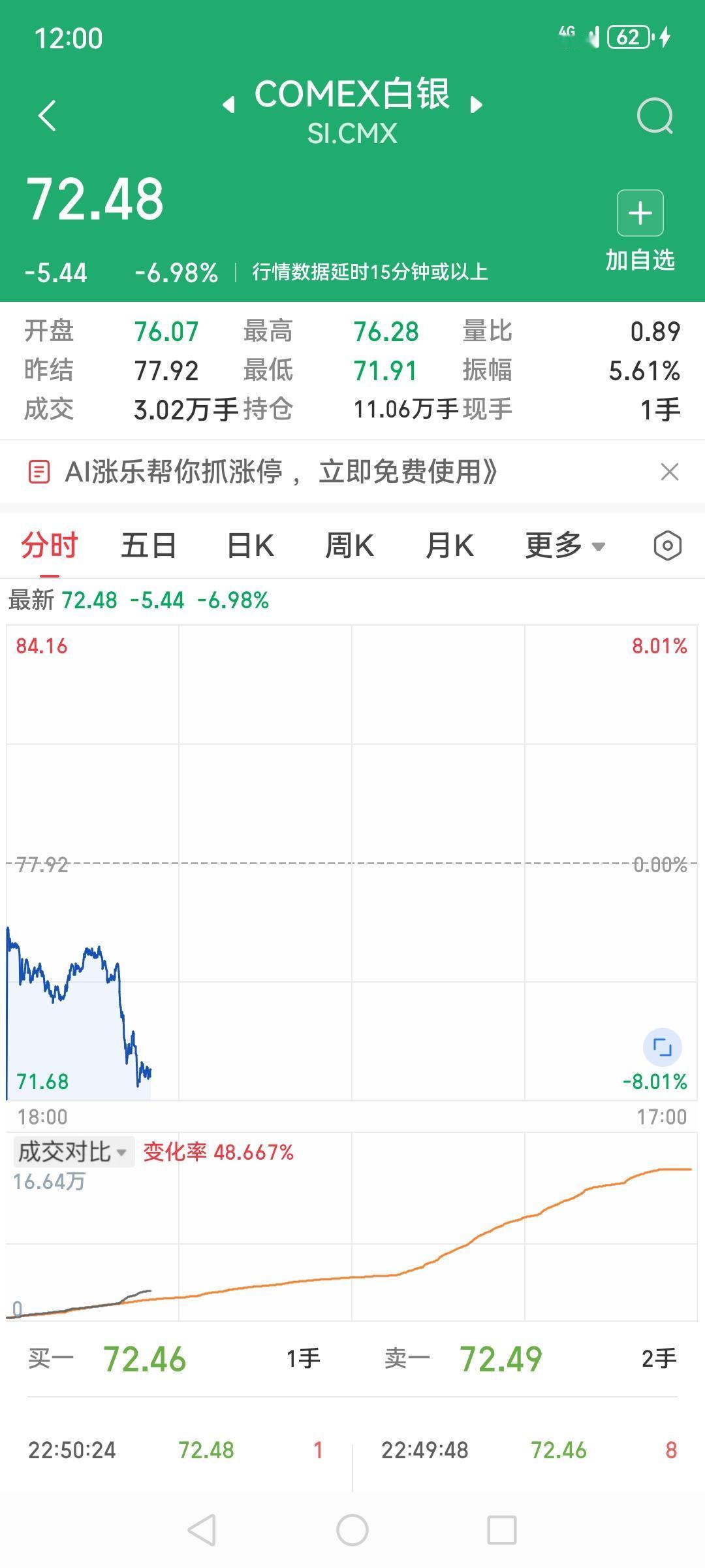 白银这波动真的是很大,又大又快,玩的是心跳,7%跌幅,比黄金剧烈的多,黄金振幅1