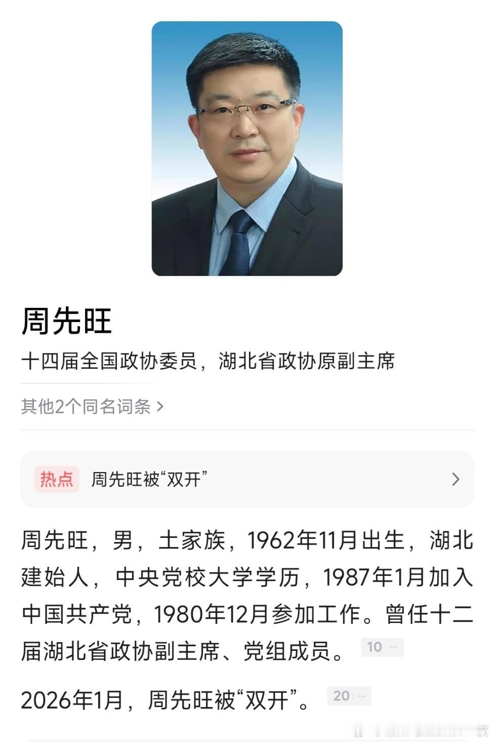 湖北省政协原副主席周先旺被双开武汉市原市长周先旺被双开!