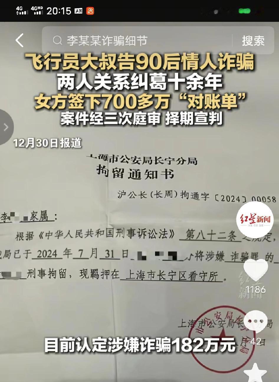十年情人转账700多万,竟因陪宿问题闹掰!飞行员反手举报女大学生诈骗,从771万指控金额一路降到182万,三次庭审把“情债”搅成刑案,这剧情比电视剧还离谱! “十年的感情,说翻就翻,700多万的转账,最后换来一纸诈骗举报。” 这起离谱的案件,主角是70后飞行员马某某和90后女大学生李某某。两人维持了十年的情人关系,期间马某某前前后后给李某某转了700多万元,本以为是一段长久的情感纠葛,却没想到因为陪宿问题彻底闹僵。 矛盾爆发后,马某某直接向警方报案,指控李某某诈骗自己771.3万元。可案件历经三次庭审,公诉机关的指控金额却一路“缩水”,从最初的771.3万元调整到了182万元,还建议法院对李某某判处十年以上有期徒刑。而李某某一方则坚决否认诈骗,认为这只是情感纠纷,是马某某“用刑案来化解情债”,并做了无罪辩护。 一场看似简单的情感闹翻,硬生生演变成了刑事诉讼,金额的大幅变动更是让整个案件充满了疑点。 有网友说:这剧情比八点档狗血剧还精彩,十年情分抵不过一点矛盾? 还有网友说700多万转出去,现在又说诈骗,早干嘛去了,看不懂有钱人的操作。 说实话,我看完这事儿真的觉得离谱到家了!十年的情分,700多万的付出,最后居然因为陪宿这点事反目成仇,还闹到了诈骗的地步,这反转谁能想到啊?而且指控金额从771万直接砍到182万,这中间的差距也太大了,很难不让人怀疑这里面是不是还有没说透的隐情。 其实抛开这些狗血的情节,这事儿也给大家提了个醒:情侣之间的大额转账真的要留个心眼,别到最后感情没了,钱也打了水漂,还扯出一堆法律纠纷。就这案子来说,到底是自愿花钱谈恋爱,还是真的被诈骗了,估计只有等法院最终判决,才能掰扯清楚了。 来源:红星新闻