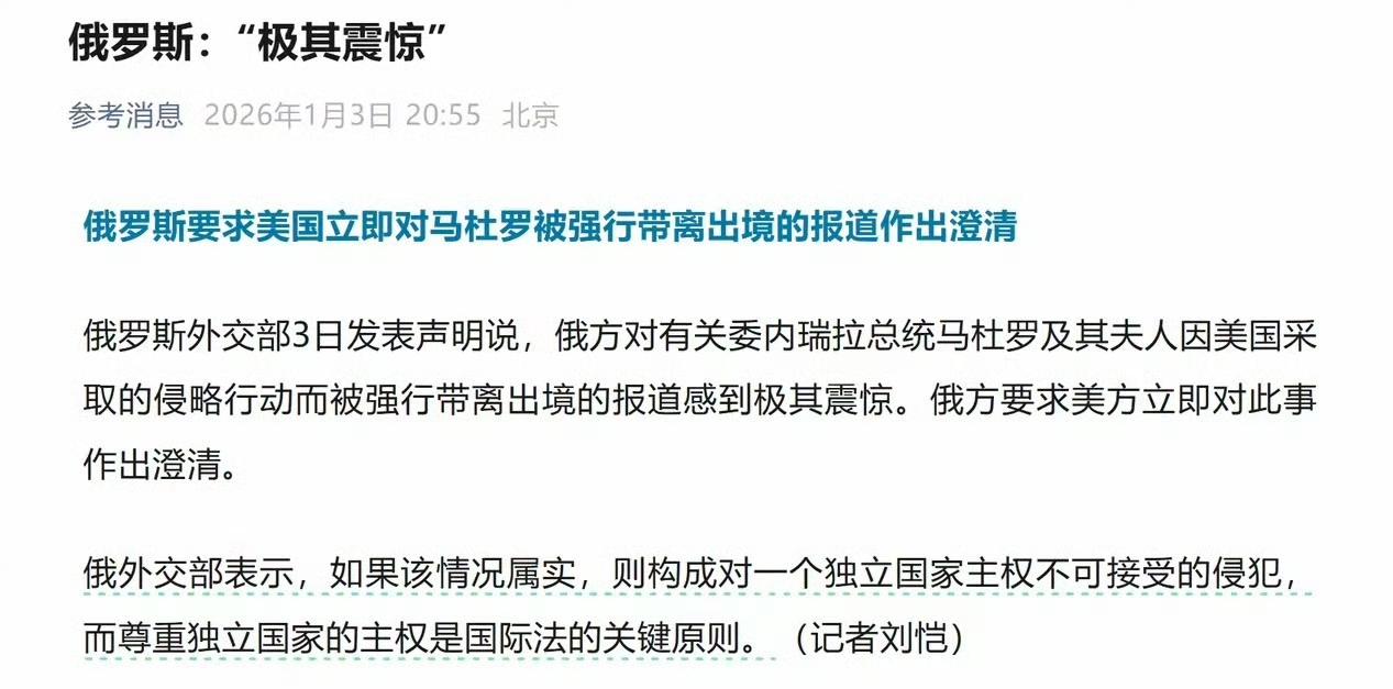马杜罗夫妇深夜被美特种部队掳走,俄罗斯的震惊写在明面上,这不是故作姿态的政治表演,而是实实在在的意料之外。 没人会想到,美国敢顶着核强国的警告,对委内瑞拉动手,还直接将马杜罗带走。俄罗斯为委内瑞拉量身打造的防空系统,曾被外界视作南美天空的屏障,结果在实战中形同虚设,别说击落一架F-16,连美军战机的毫毛都没伤到。 派驻当地的军事顾问和瓦格纳雇佣军,本是俄罗斯影响力的延伸,却在关键时刻集体失声,没起到半点作用。更让俄罗斯难堪的是,美军兑现了曾经吹嘘的“1小时22分”速战速决,用一场教科书式的闪电行动,狠狠打了所有人的脸。 这场行动之后,俄罗斯要面对的麻烦才刚刚开始。首当其冲的就是南美战略支点的动摇。委内瑞拉会不会步叙利亚的后尘,政权更迭后彻底倒向西方,这是俄罗斯必须直面的问题。一旦委内瑞拉变天,俄罗斯在南美苦心经营多年的立足之地,恐怕会就此崩塌。 更现实的难题还在后面。此前援助委内瑞拉的大批军火,如今成了烫手山芋。要是委内瑞拉新政权转向,把这些武器转手交给乌克兰,无异于给俄罗斯的对乌局势火上浇油。军火的流向失控,意味着俄罗斯的军援不仅没起到预期作用,反而可能变成扎向自己的刀。 经济层面的冲击同样不容小觑。俄罗斯的财政高度依赖能源出口,油价的涨跌直接关系到国家的钱袋子。一旦美国解除对委内瑞拉的制裁,这个南美石油大国的原油涌入国际市场,必然会压低全球油价。届时,俄罗斯靠什么维持能源收入,填补财政缺口,已经成了摆在眼前的棘手难题。 一场看似针对委内瑞拉的军事行动,撕开的却是俄罗斯在国际舞台上的多重困境。这不是偶然的冲突,而是大国博弈格局下的必然结果,俄罗斯的被动,才刚刚开始显现。