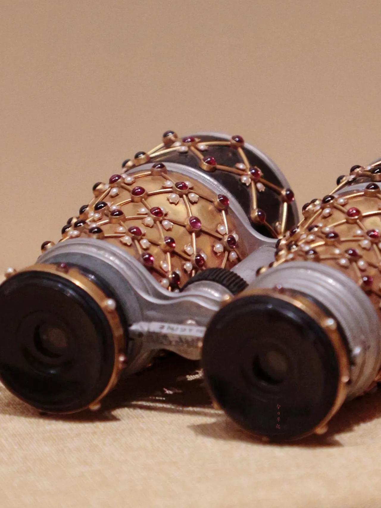 【皇上的望远镜】望远镜,古人称“千里镜”,很形象。 这件望远镜收藏在故宫,应该是臣下或者外邦进贡的物品,至于是“出厂”就缀满珍珠宝石,还是进口之后由国内匠人加饰珍珠宝石,我就不清楚了。 贡品单子收藏在中国第一历史档案馆,记录了粤海关为雍正皇帝采买的贡品,有“金标、千里镜、自鸣报时、益达联规矩、双面哆罗呢、洋绣手巾、洋绣门帘、花绒毡”等等,虽然有些名称不认识,但能猜到都是些洋玩意儿。 单子里的“千里镜九架”是否包含眼前这件珠光宝气的望远镜,就不得而知了。不过,文献与文物对照着看,确实多了趣味。 望远镜 博物馆大拜年 故宫
